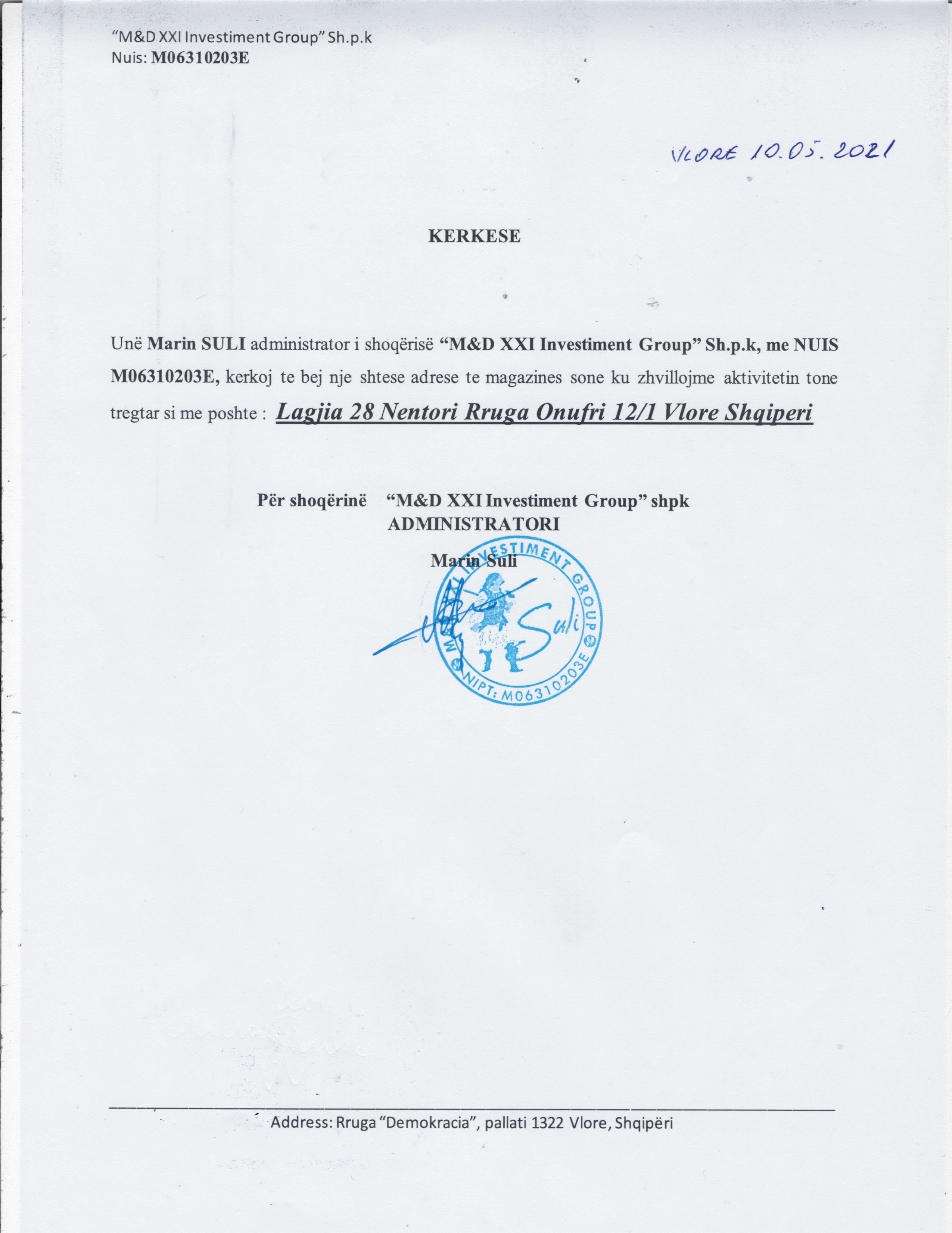 → Ekstrakti Historik i Regjistrit Tregtar date 29.03.2022 → Akt themelimi i Shoqerise → Vendimi i asamblese se pergjithshme date 10.05.2021 |