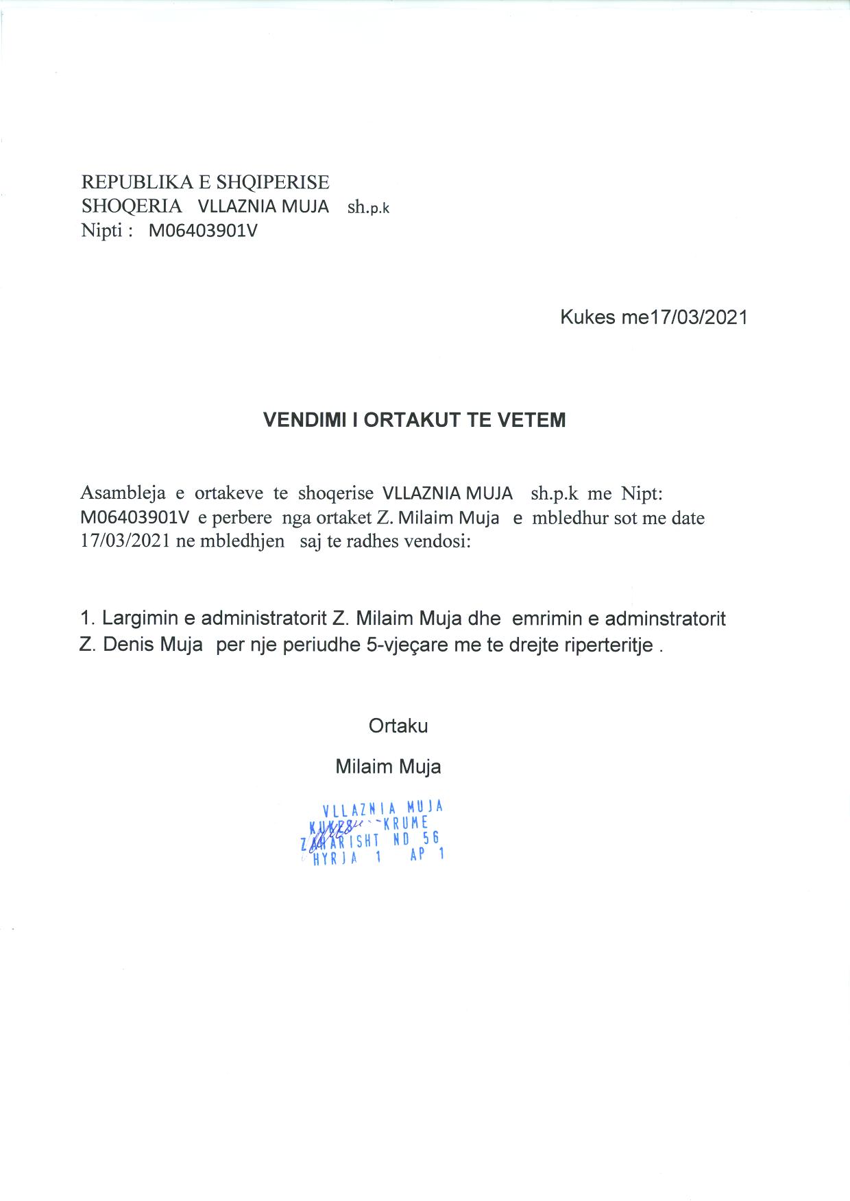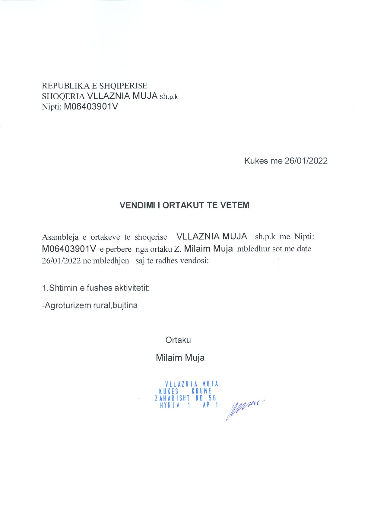 | Emërtime të tjera Tregtare: | VLLAZNIA MUJA |