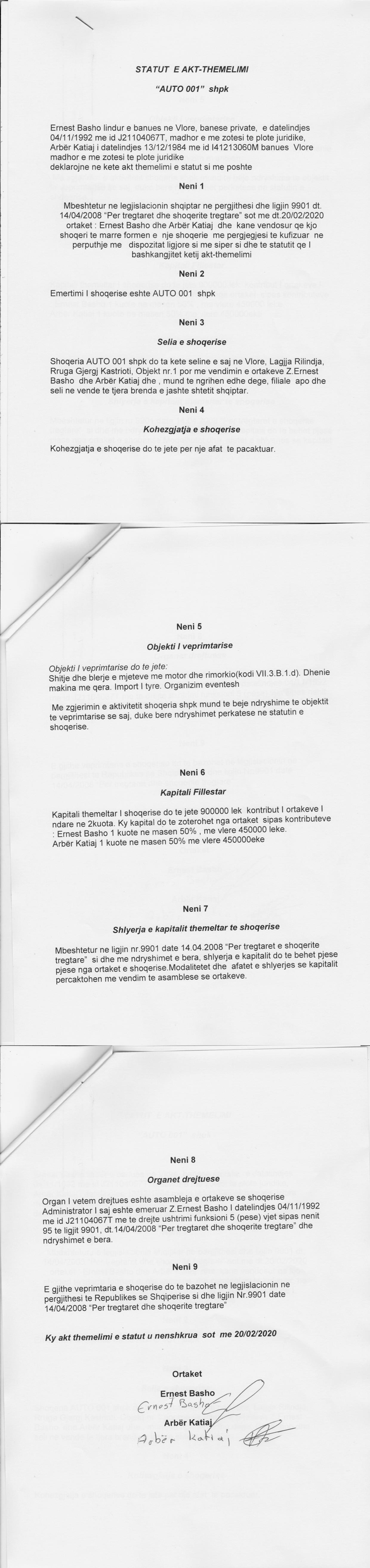 → Ekstrakti Historik i Regjistrit Tregtar date 27.04.2022 → Akt themelimi dhe Statuti i Shoqerise |
