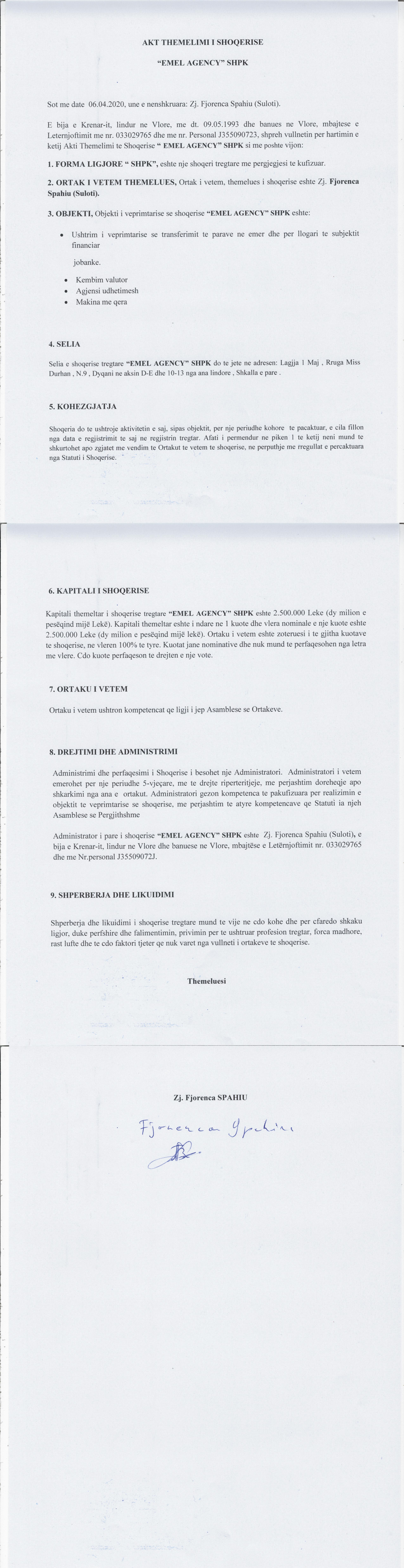 | Emërtime të tjera Tregtare: | EMEL AGENCY |