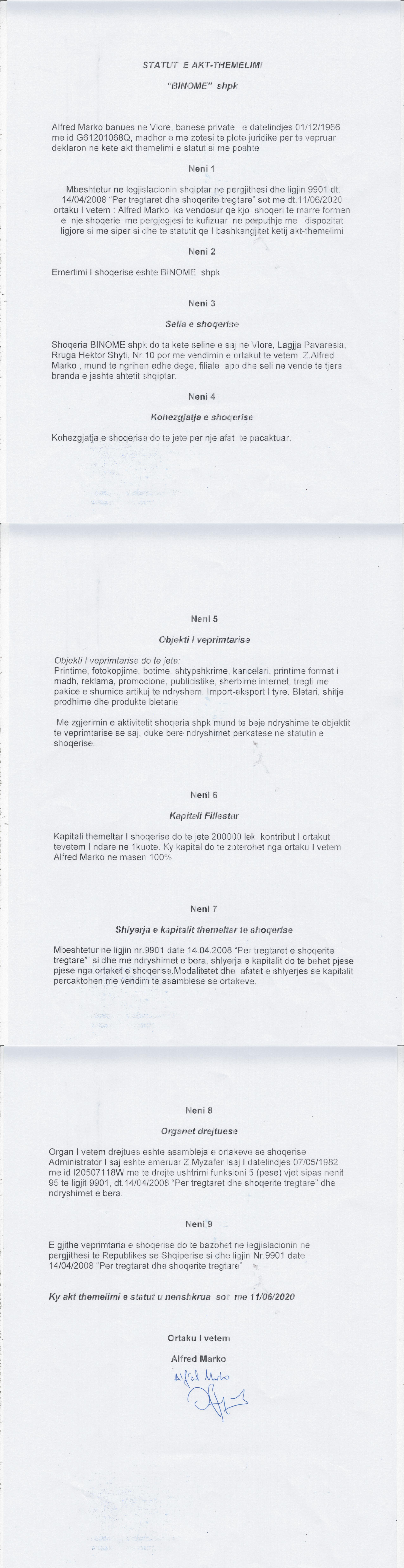 → Ekstrakti Historik I Regjistrit Tregtar date 16.06.2020 → Akt themelimi dhe Statuti i Shoqerise → Ekstrakti Historik I Regjistrit Tregtar date 25.05.2023 |