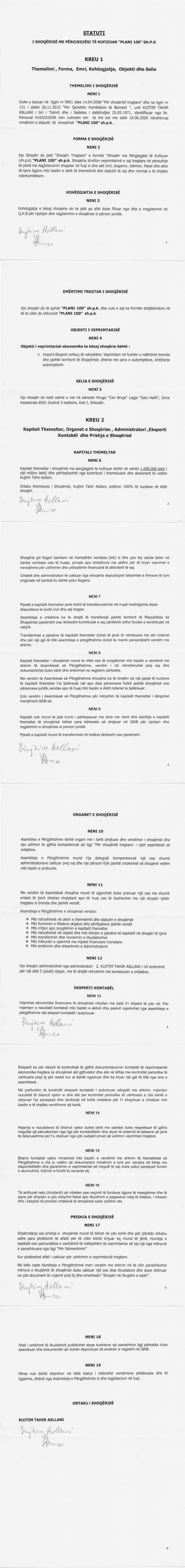→ Ekstrakti Historik I Regjistrit Tregtar date 16.07.2020 → Statuti I Shoqerise |