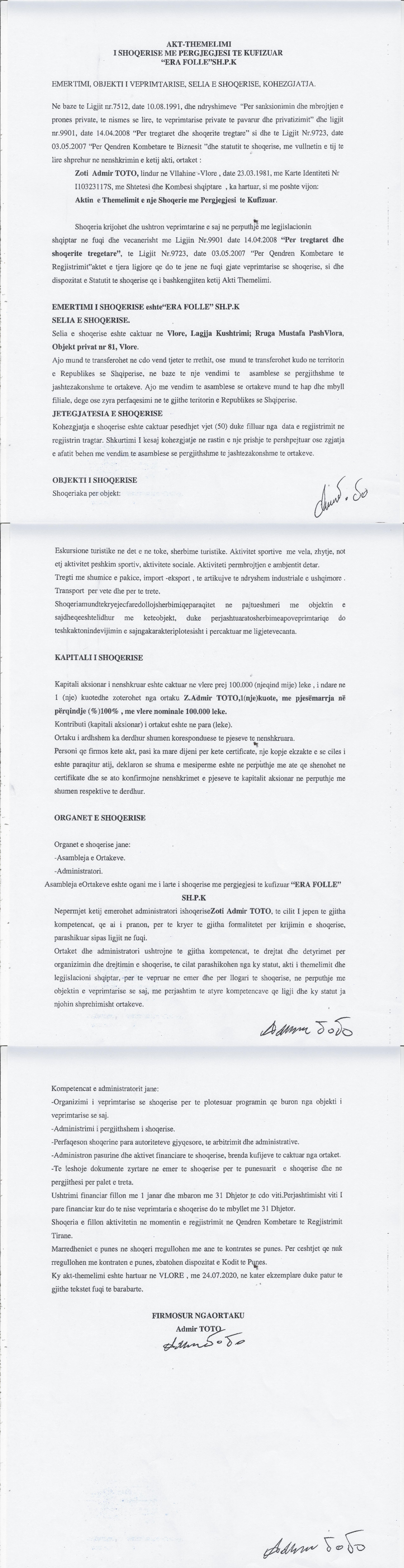 → Akti I Themelimit te Shoqerise |