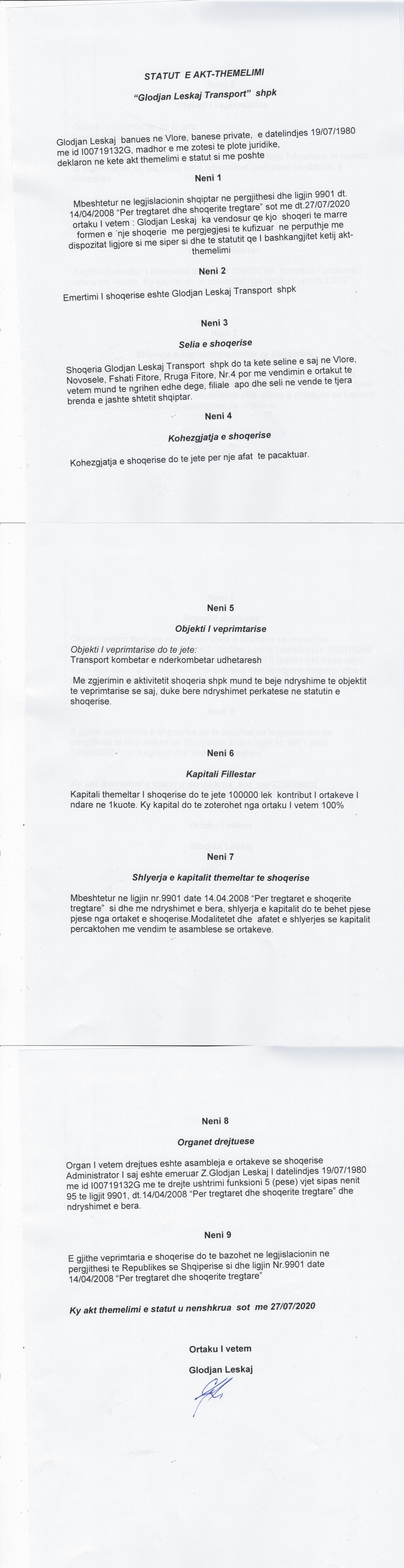 | Emërtime të tjera Tregtare: | Glodjan Leskaj Transport |