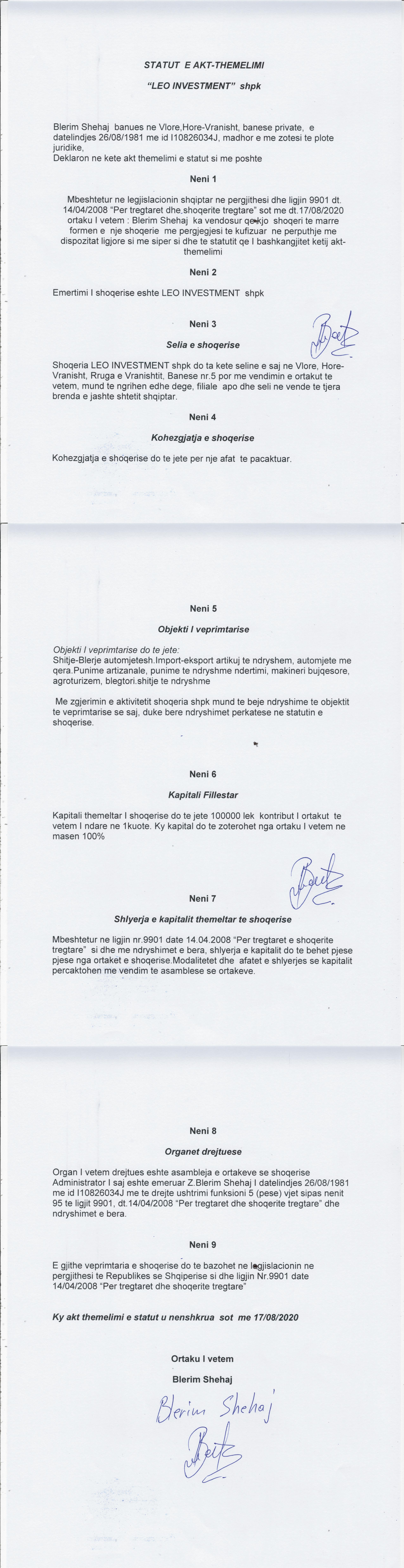 | Emërtime të tjera Tregtare: | LEO INVESTMENT |