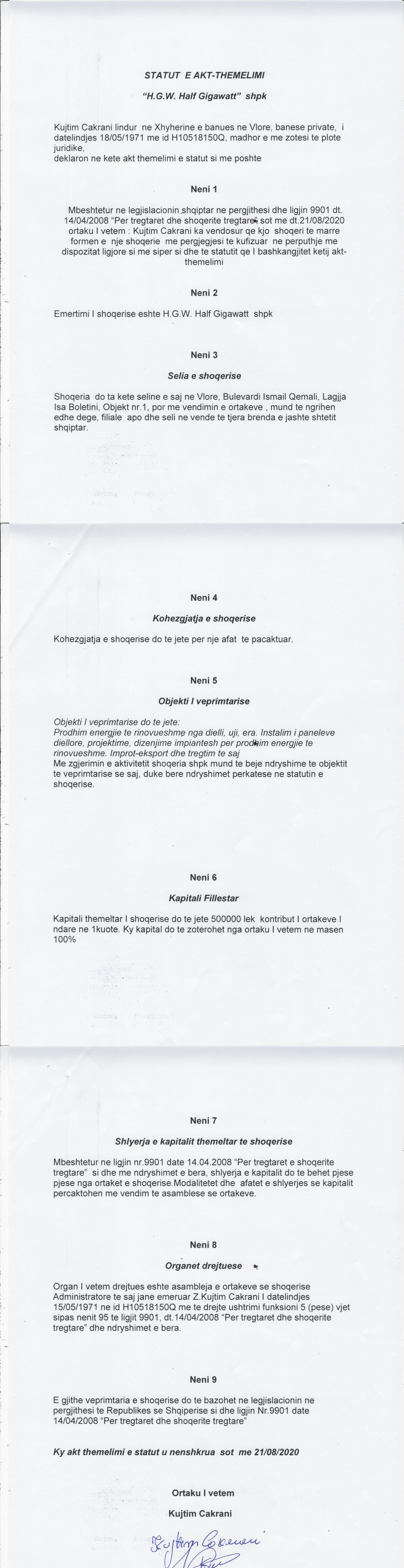 → Akti I Themelimit dhe Statuti I Shoqerise |