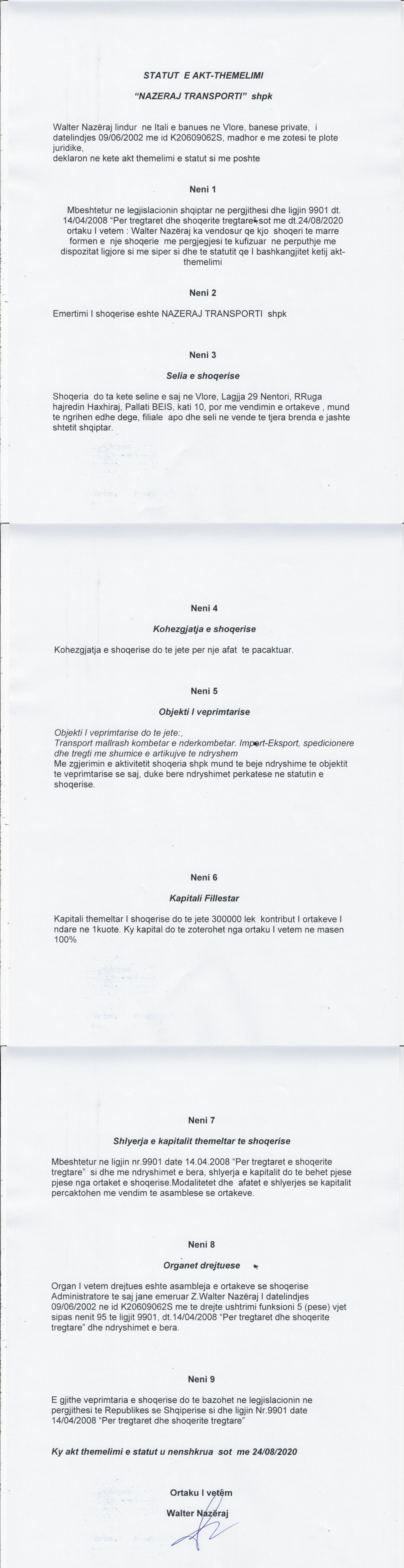 → Akti I Themelimit dhe Statuti I Shoqerise |