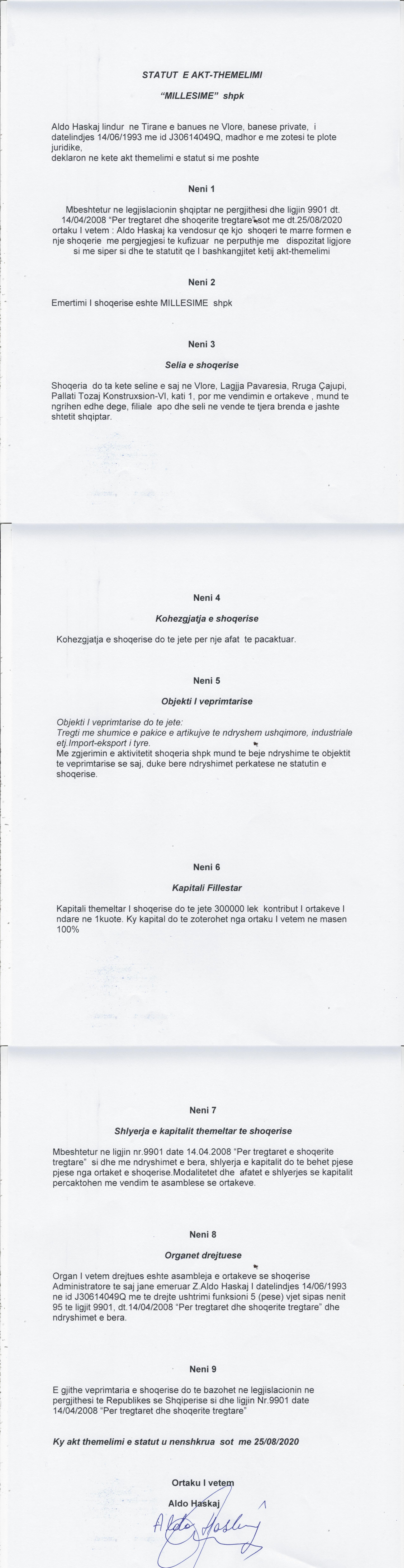 → Akti I Themelimit dhe Statuti I Shoqerise |