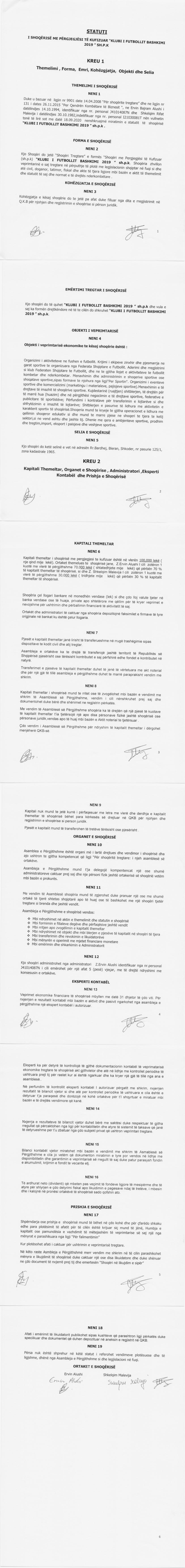 | Emërtime të tjera Tregtare: | KLUBI I FUTBOLLIT BASHKIMI 2019 |