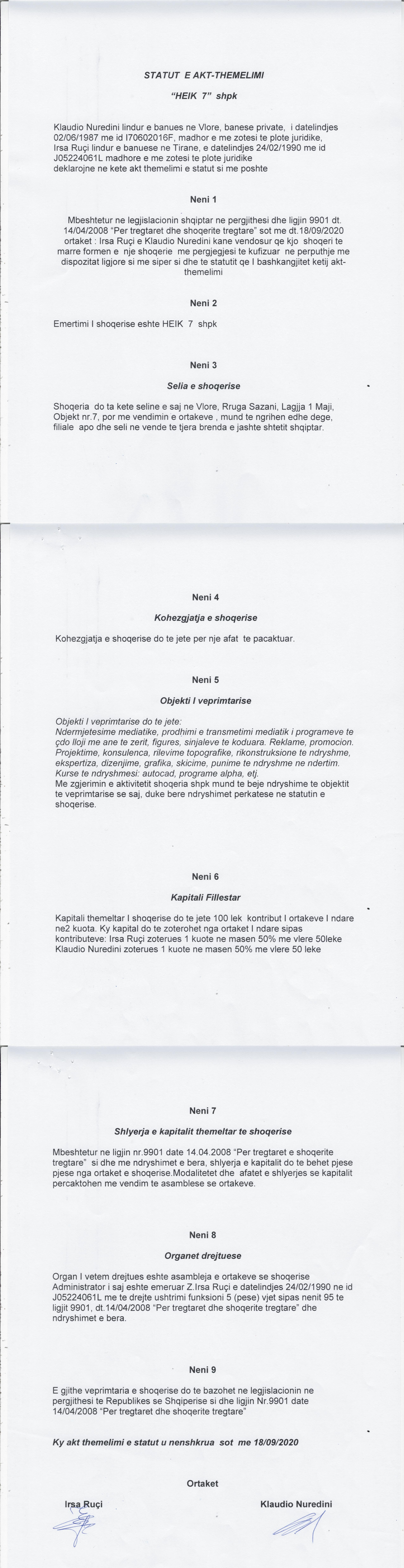 → Akti I Themelimit dhe Statuti I Shoqerise |