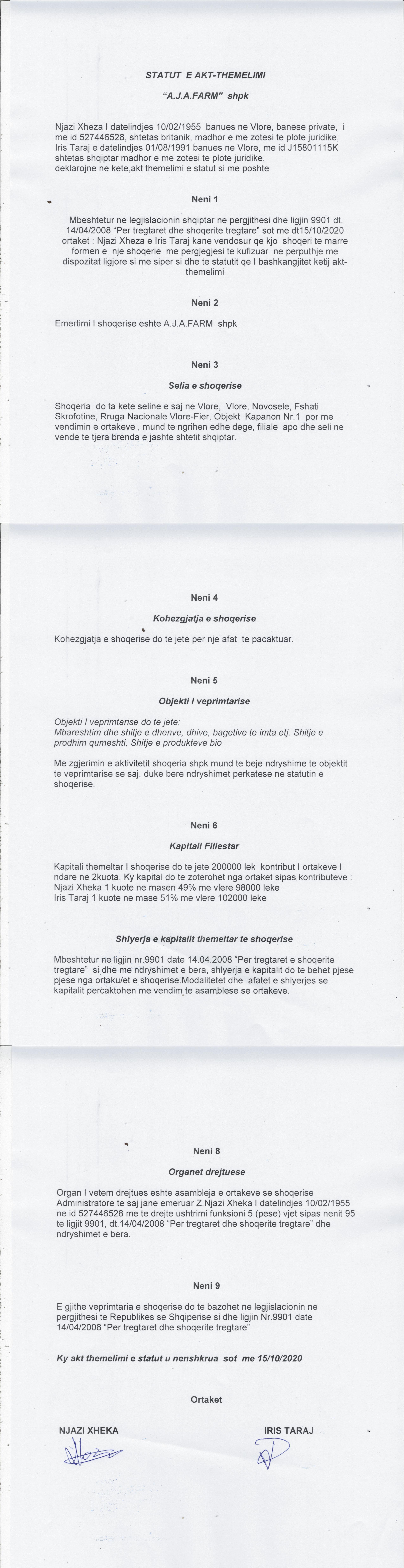 → Akti I Themelimit dhe Statuti I Shoqerise |
