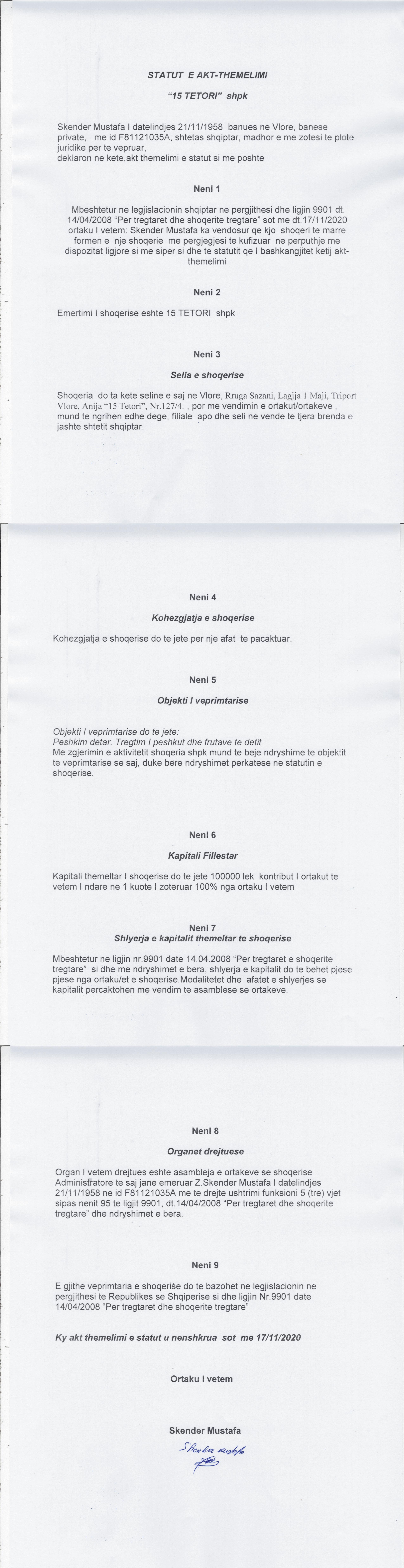 → Ekstrakti Historik I Regjistrit Tregtar date 20.11.2020 |