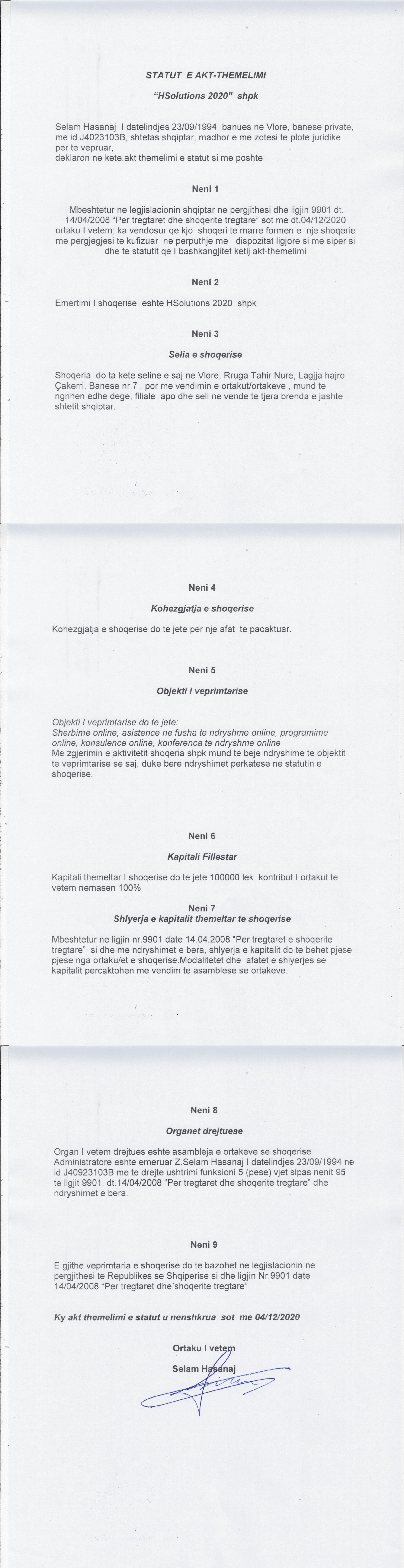 → Akti I Themelimit dhe Statuti I Shoqerise |