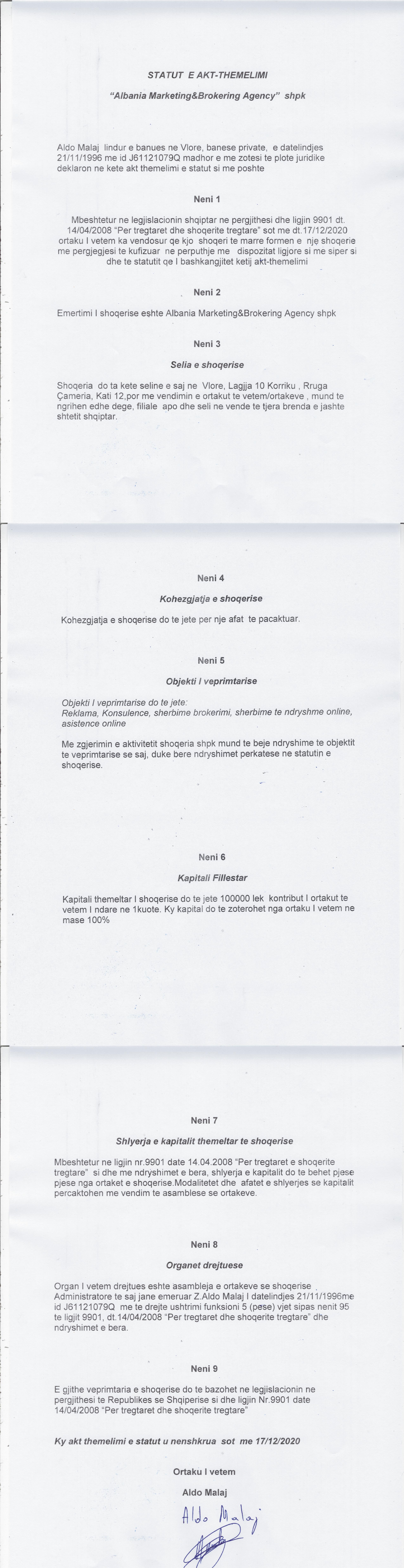 → Akti I Themelimit dhe Statuti I Shoqerise |