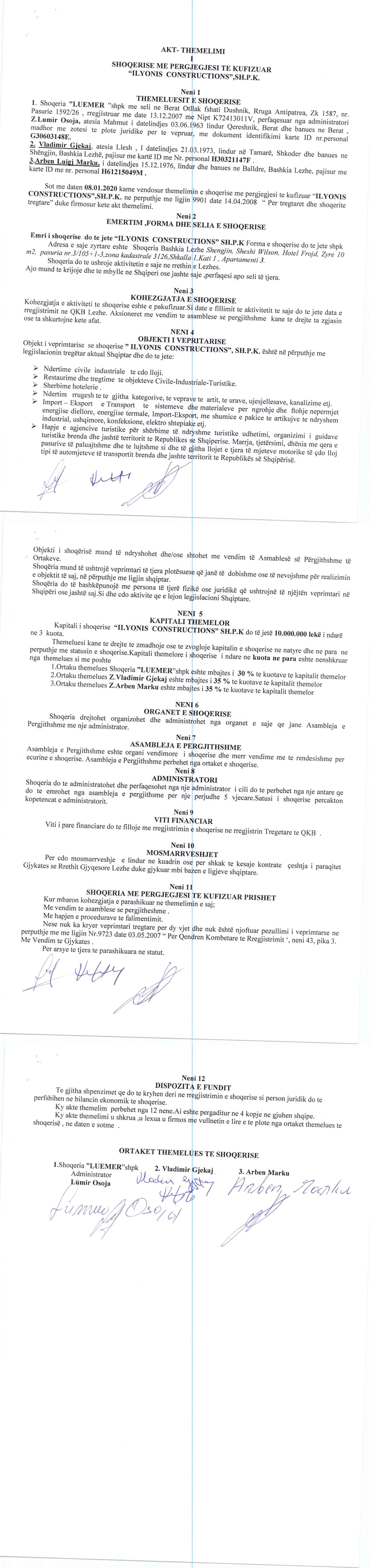 | Emërtime të tjera Tregtare: | " ILYONIS CONSTRUCTIONS" SH.P.K |