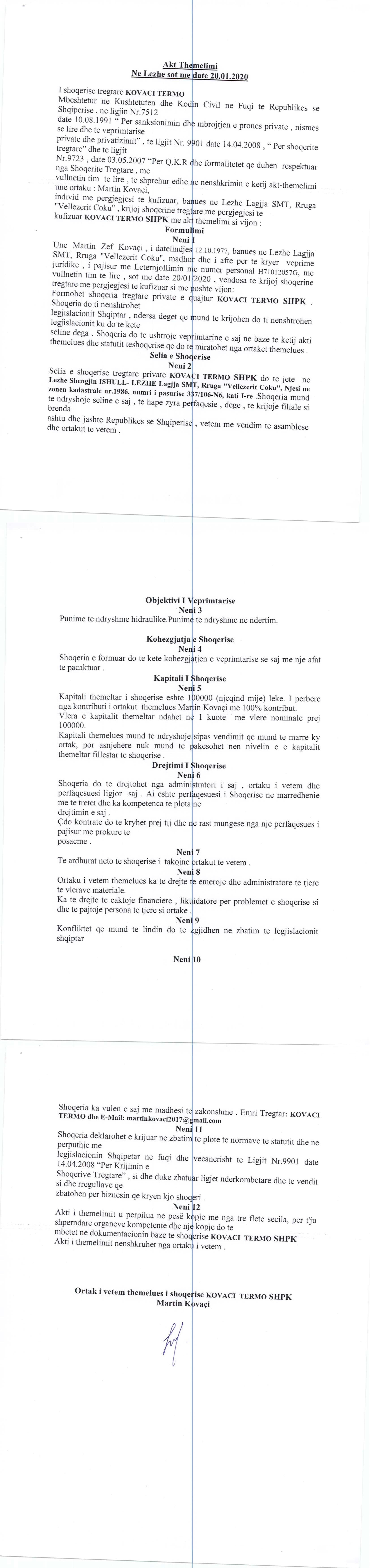 Emërtime të tjera Tregtare: KOVACI TERMO