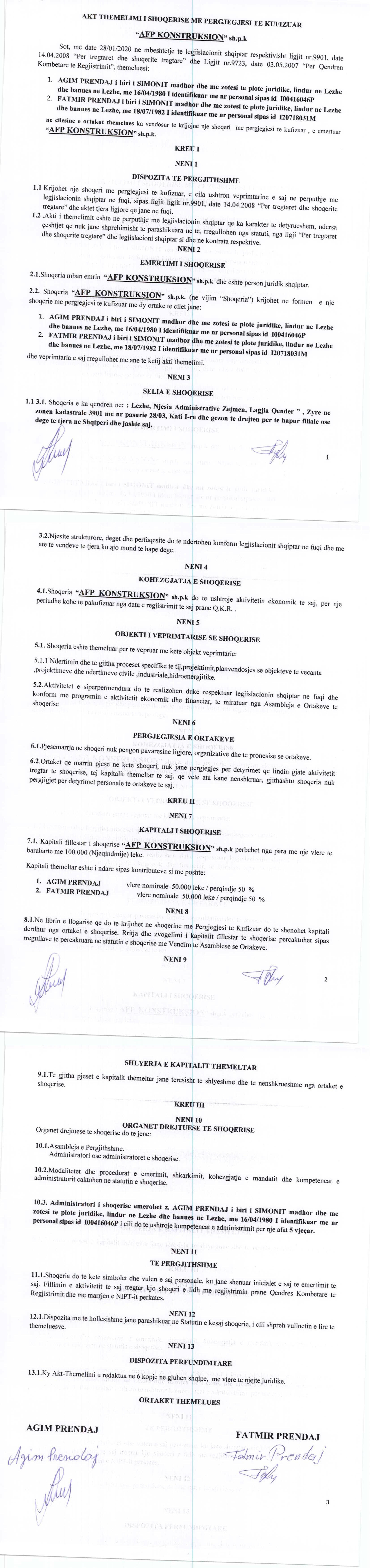 → Ekstrakti Historik i Regjistrit Tregtar date 07.04.2022 → Akt themelimi i Shoqerise → Vendimi i asamblese se pergjithshme date 30.03.2021 |