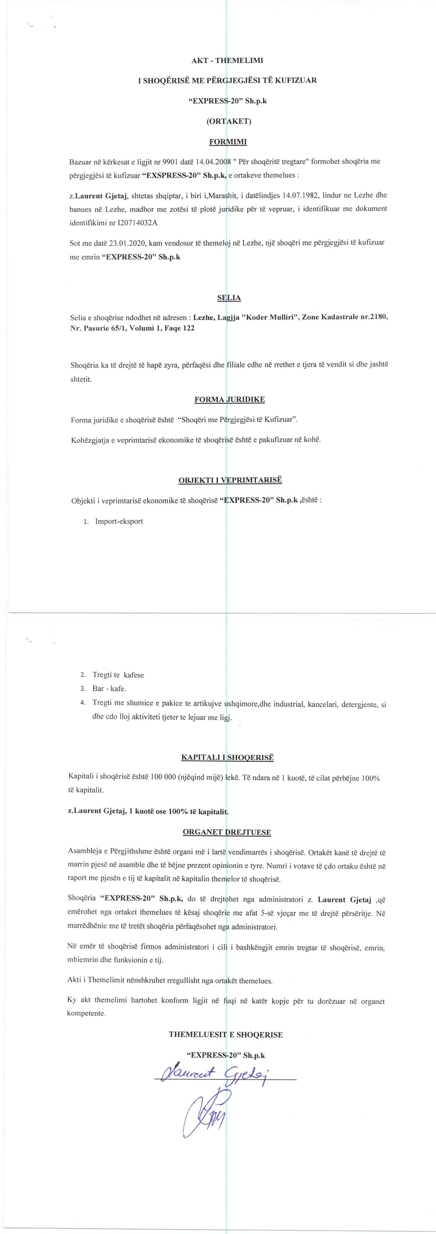 | Emërtime të tjera Tregtare: | "EXPRESS-20" Sh.p.k |