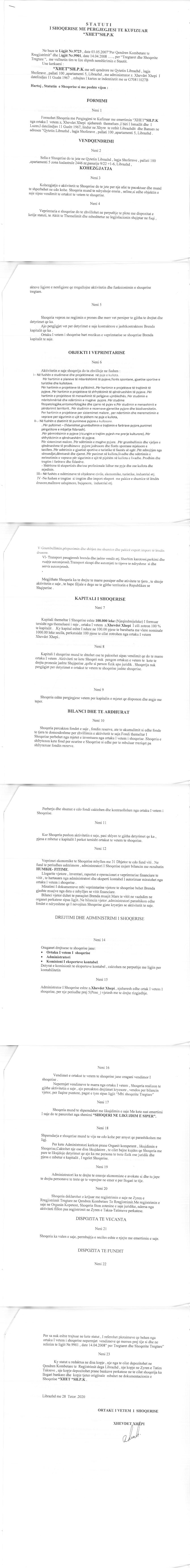 → Ekstrakti Historik I Regjistrit Tregtar date 10.11.2020 → Statuti I Shoqerise → Ekstrakti Historik I Regjistrit Tregtar date 25.05.2023 |