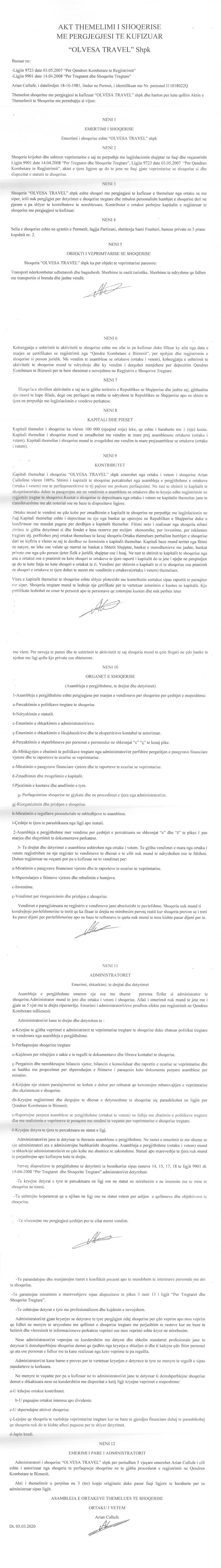 → Ekstrakti Historik i Regjistrit Tregtar date 10.05.2022 → Akt themelimi i Shoqerise |