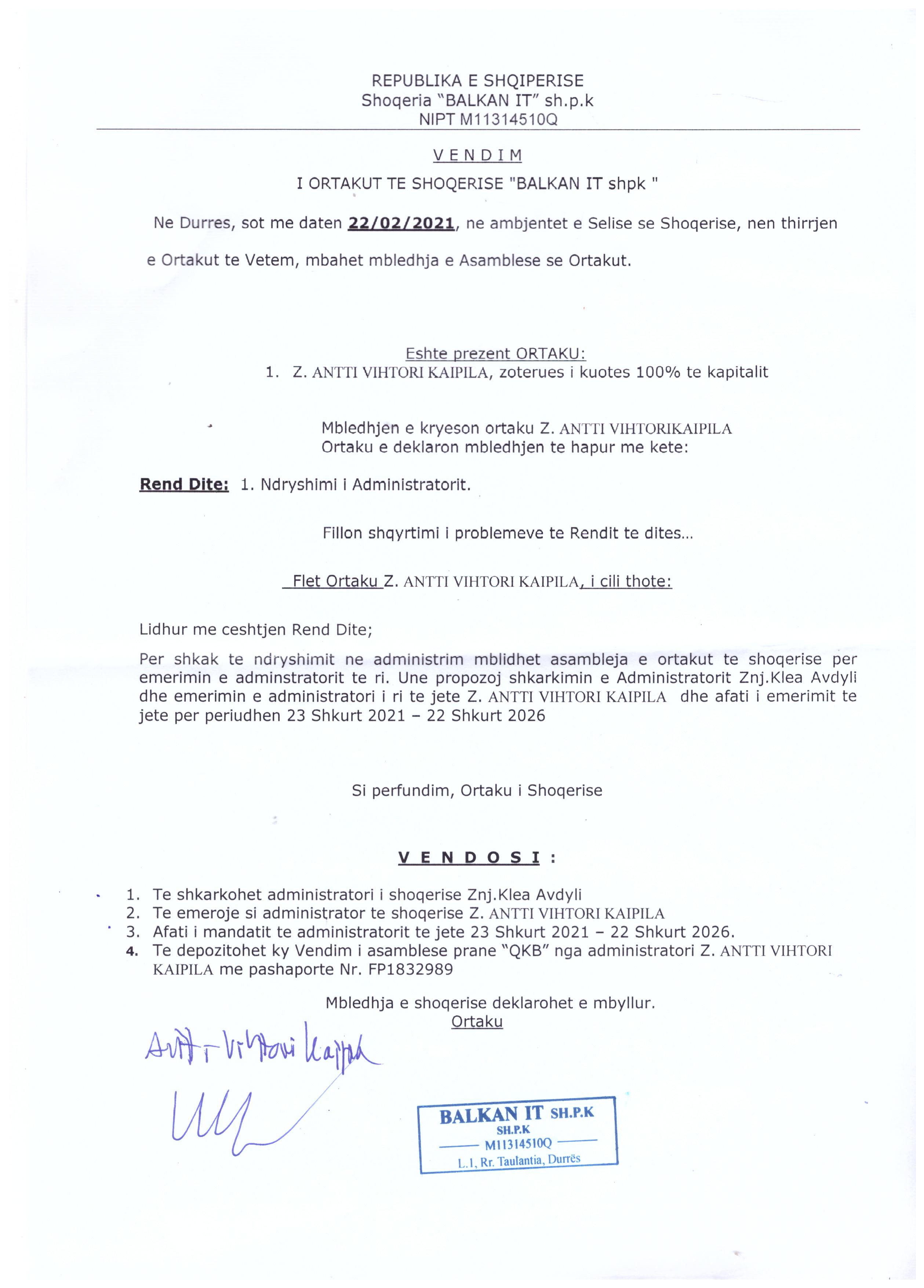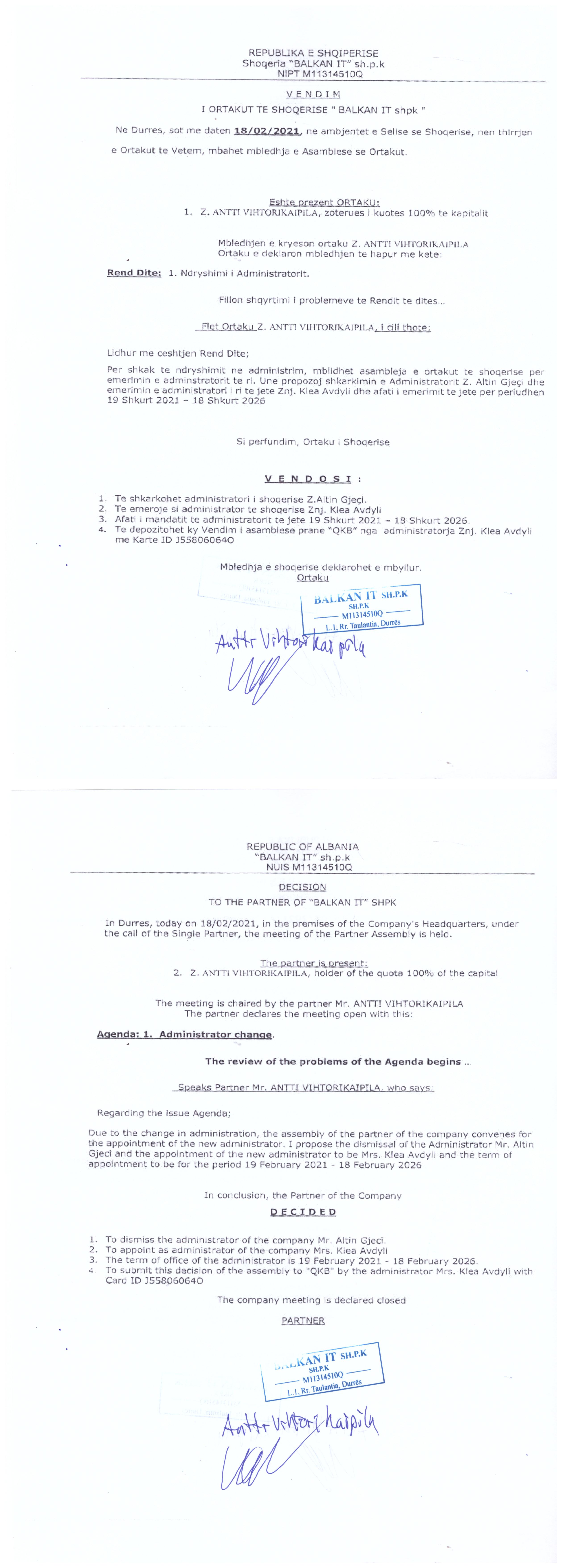 | Emërtime të tjera Tregtare: | BALKAN IT |
