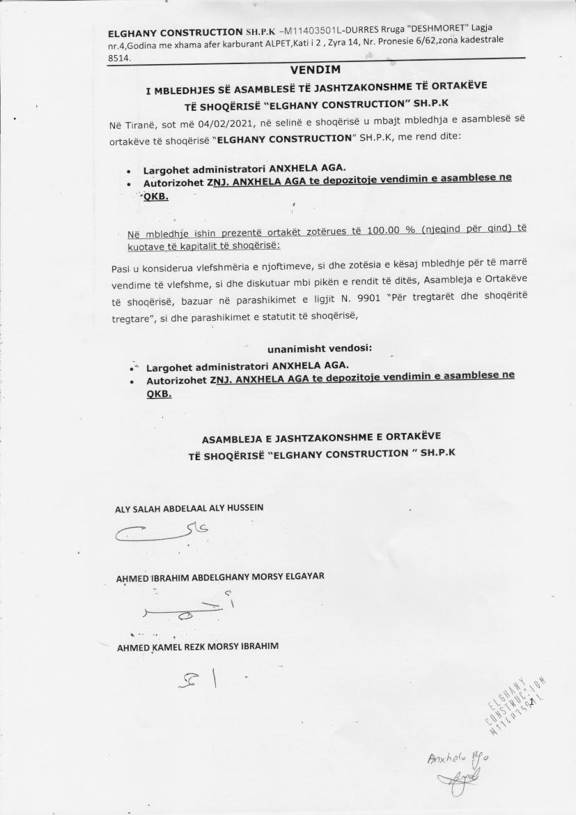 → Ekstrakt Historik i Regjistrit Tregtar, date 21/9/2021 → Akt themelimi i shoqerise, date 01.02.2021 → Vendimi i asamblese, date 04.02.2021 |