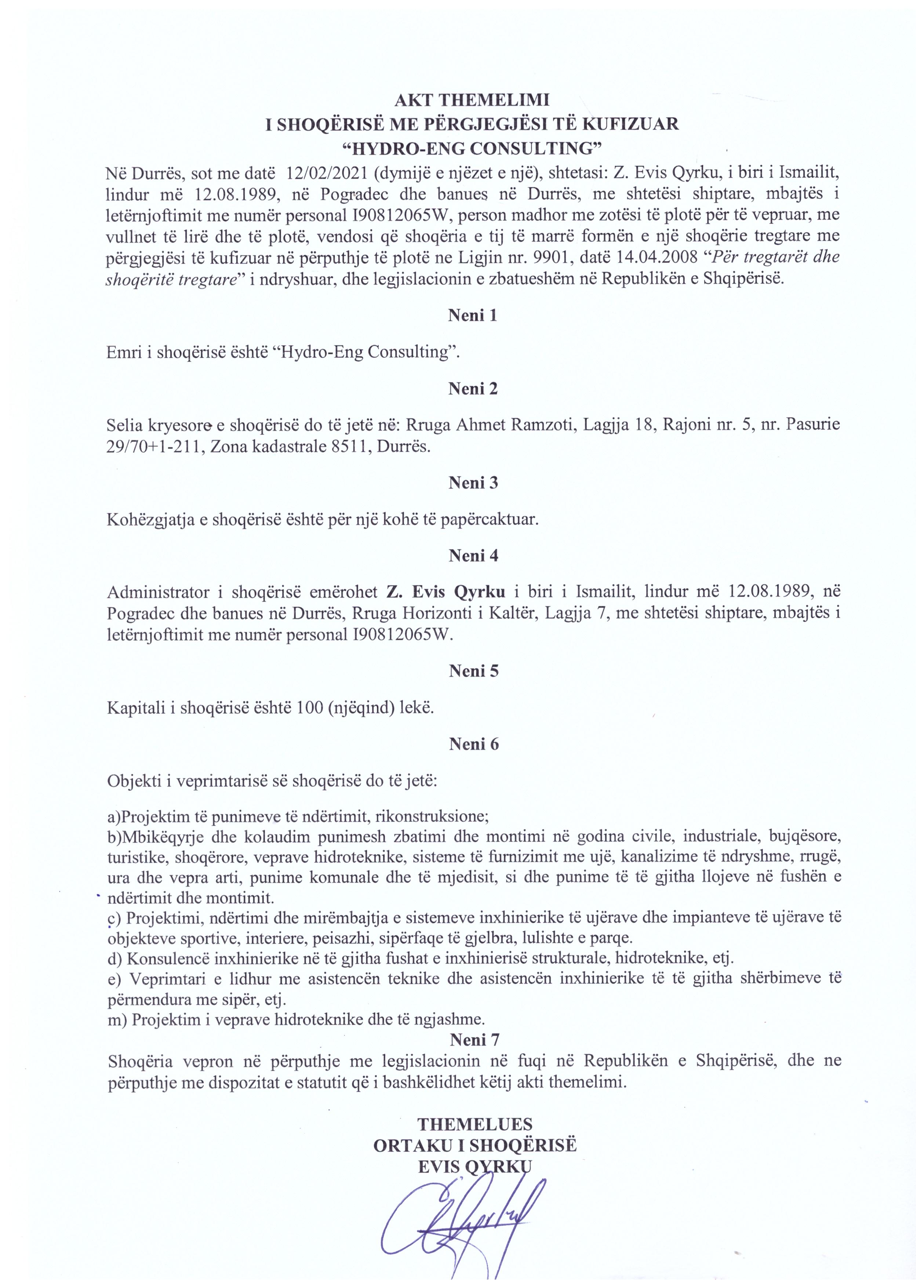 | Emërtime të tjera Tregtare: | HYDRO-ENG CONSULTING |