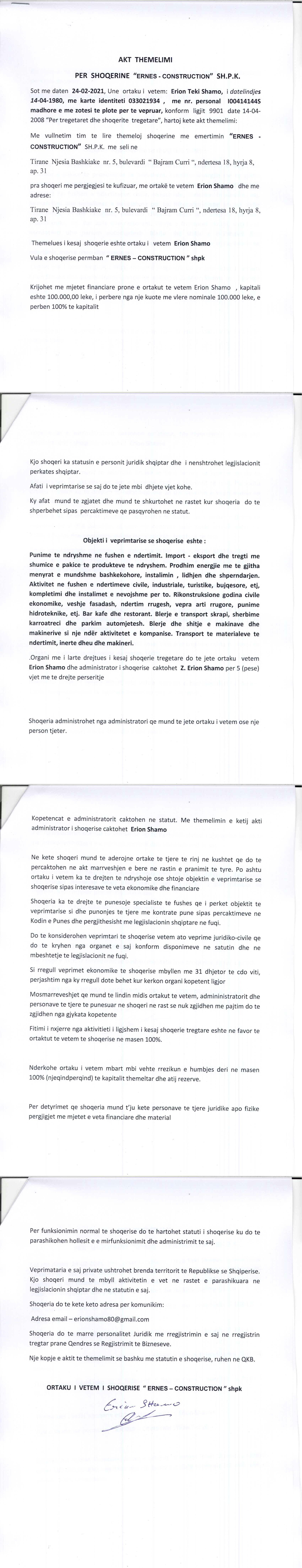 → Ekstrakt Historik i Regjistrit Tregtar, date 7/10/2021 → Akti themelimit, date 24.02.2021 → Statuti i shoqerise, date 24.02.2021 |