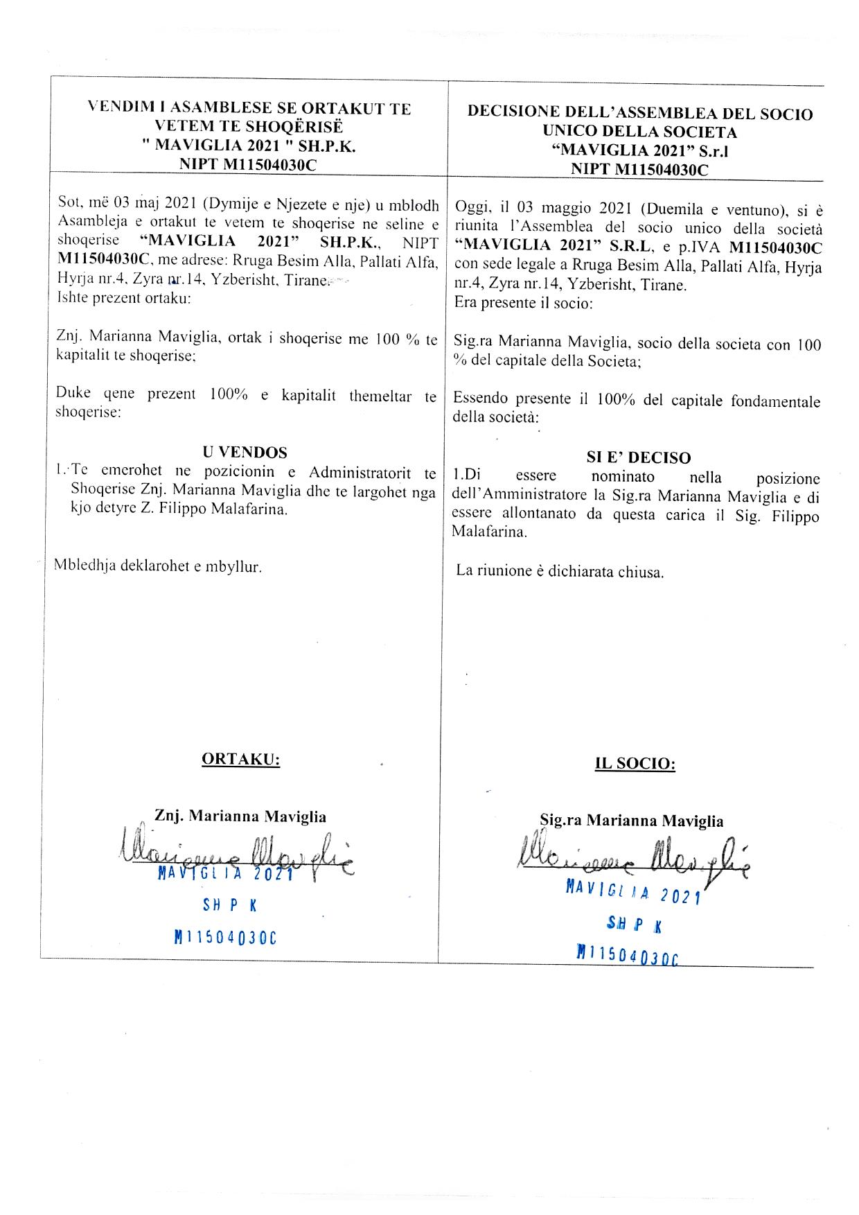 → Ekstrakt Historik i Regjistrit Tregtar, date 12//10/2021 → Akt themelimi dhe statuti i shoqerise, date 03.03.2021 → Vendimi i ortakut te vetem , date 03.05.2021 |