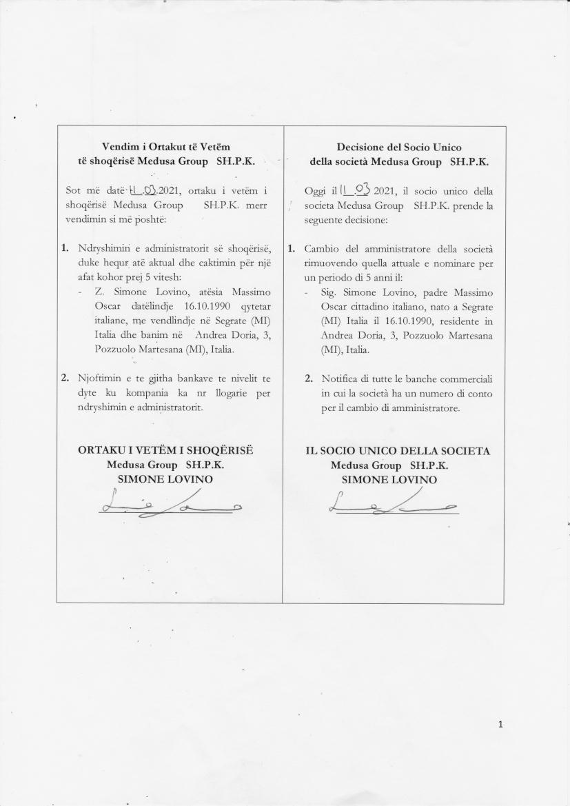 → Ekstrakt Historik i Regjistrit Tregtar, date 15.10.2021 → Statuti i shoqerise, date 25.02.2021 → Vendimi i i ortakut te vetem, date 11.03.2021 |
