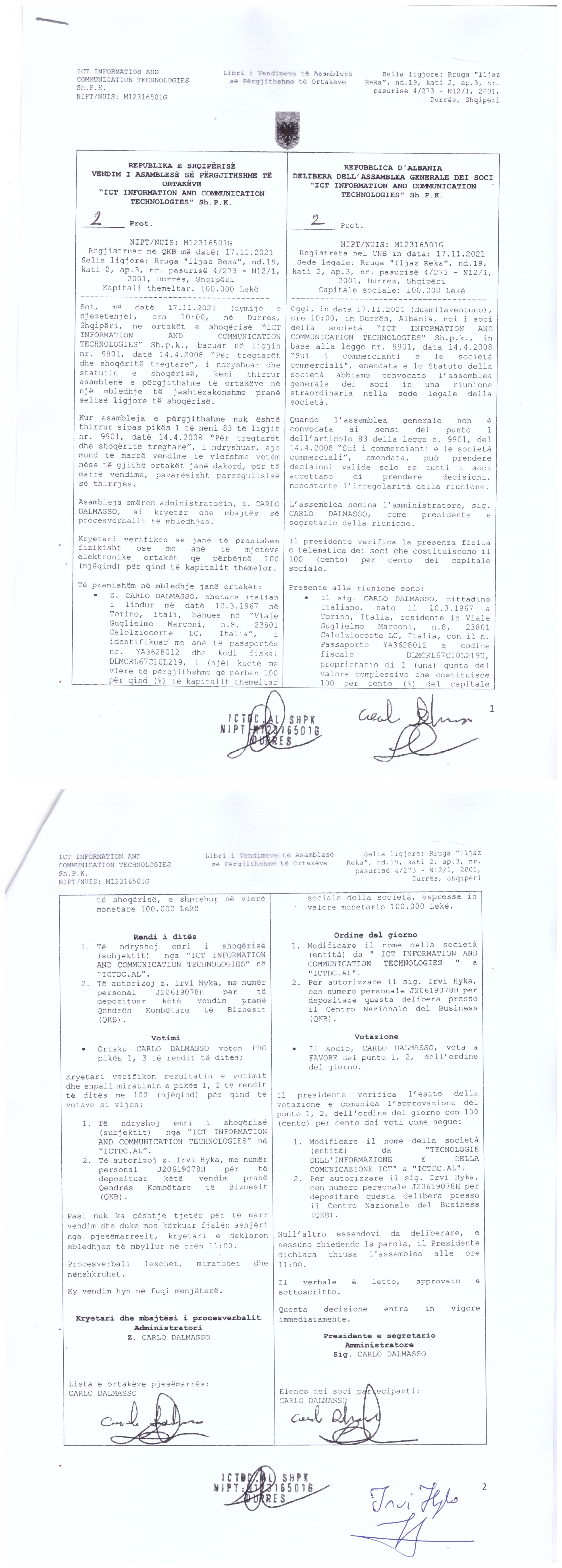 → Ekstrakti Historik i Regjistrit Tregtar date 12.03.2022 → Akt themelimi i Shoqerise → Vendimi i asamblese se pergjithshme date 16.11.2021 → Vendimi i asamblese se pergjithshme date 17.11.2021 |