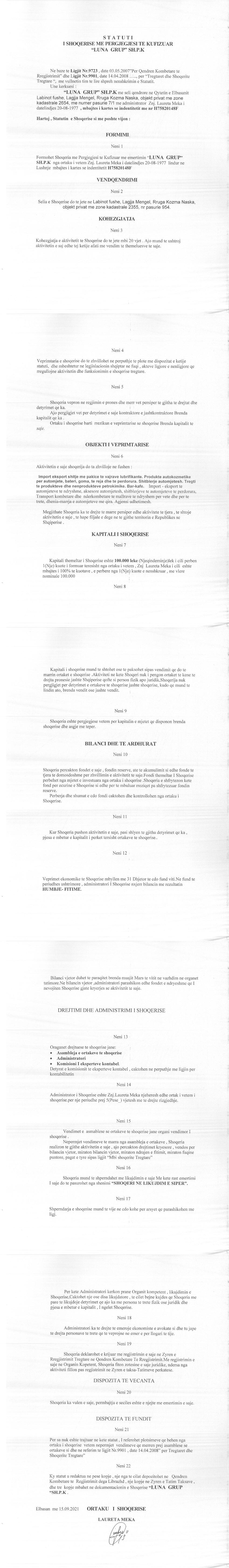 → Ekstrakt Historik i Regjistrit Tregtar, date 24.02.2022 → Statuti i shoqerise, date 15.09.2021 |