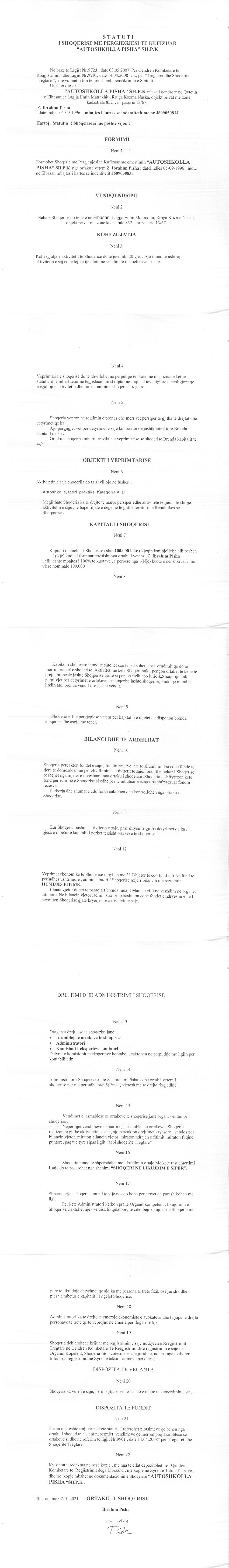 | Emërtime të tjera Tregtare: | AUTOSHKOLLA PISHA |