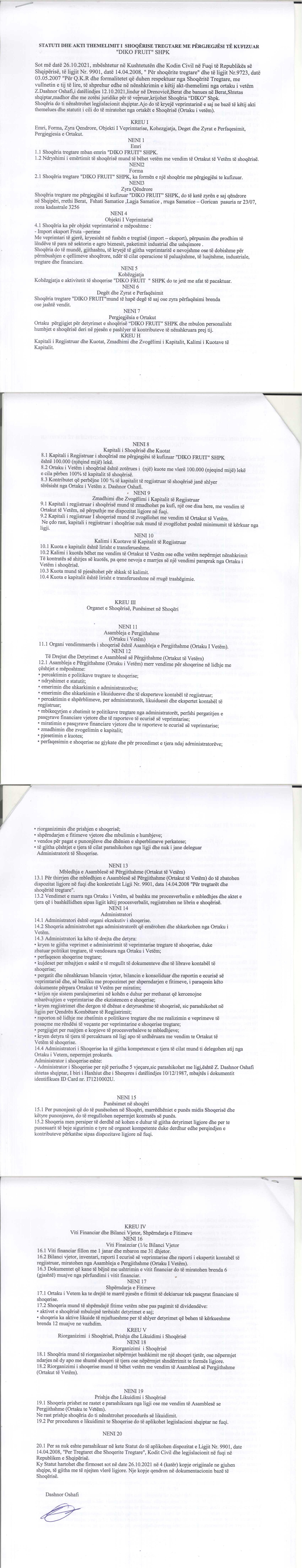 → Ekstrakti Historik i Regjistrit Tregtar date 09.03.2022 → Akt themelimi dhe Statuti i Shoqerise |