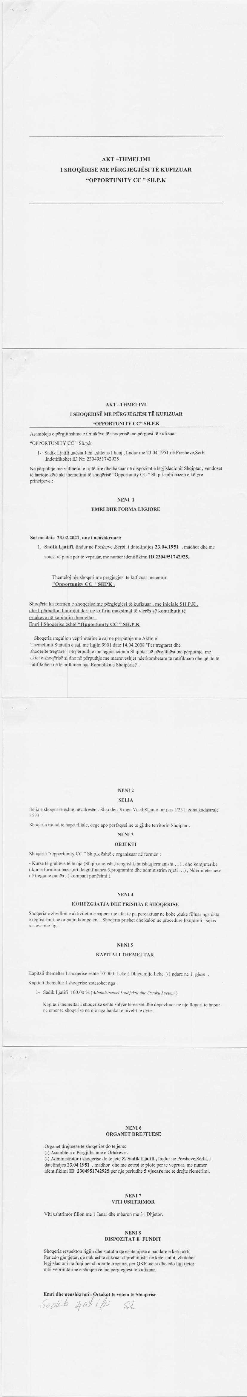 → Ekstrakt Historik i Regjistrit Tregtar, date 6.10.2021 → Statuti i shoqerise, date 23.02.2021 → Akt themelimi, date 23.02.2021 |