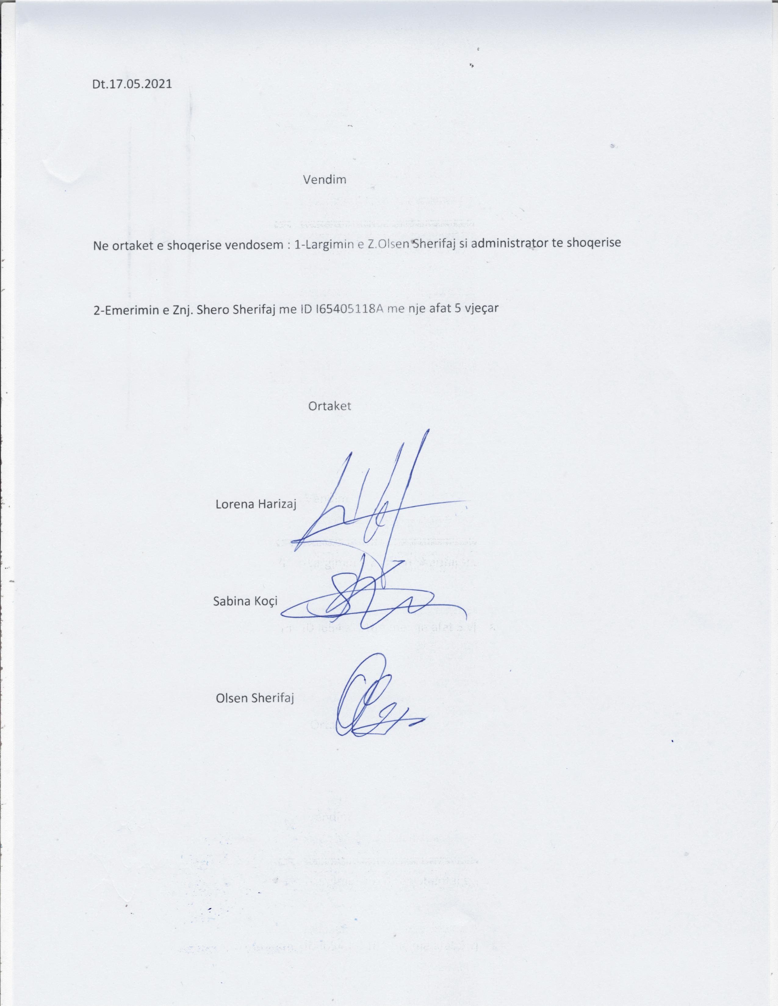 → Ekstrakt Historik i Regjistrit Tregtar, date 22.10.2021 → Statuti i shoqerise, date 01.03.2021 → Vendimi i Asamblese, date 17.05.2021 |