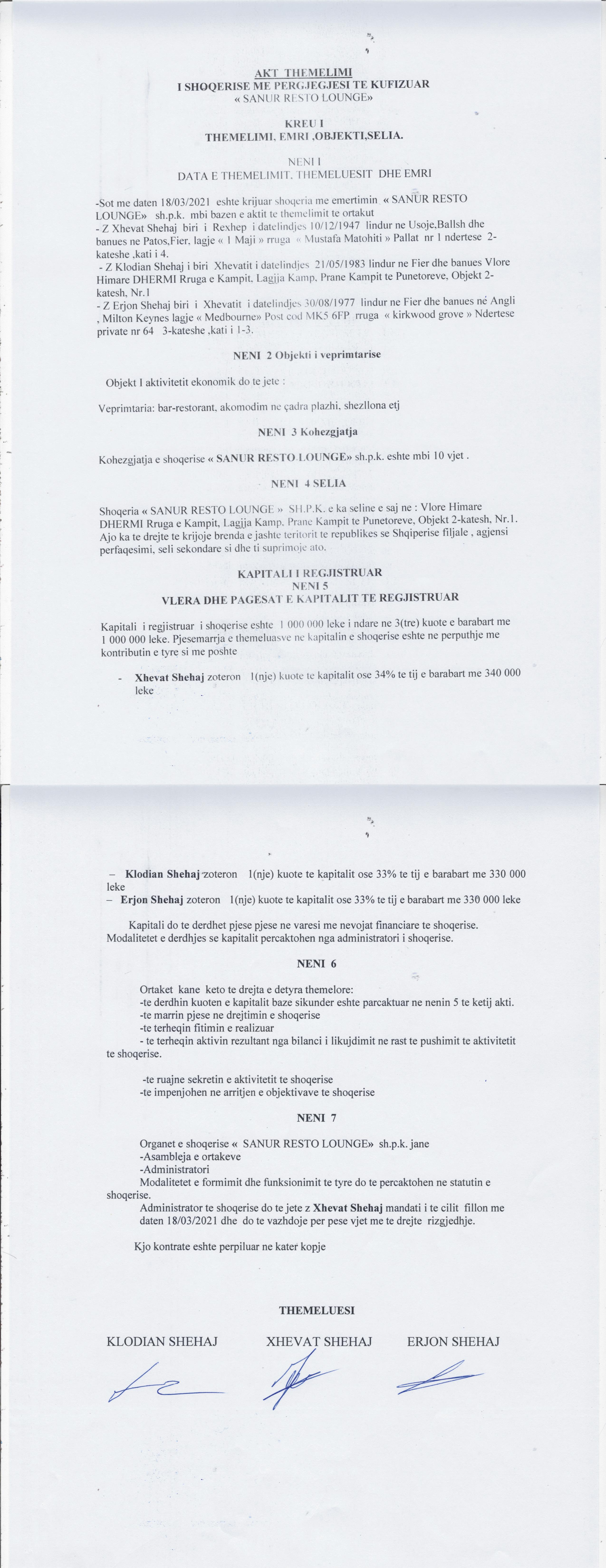 | Kapitali Themeltar(Lekë): | 1 000 000,00 |