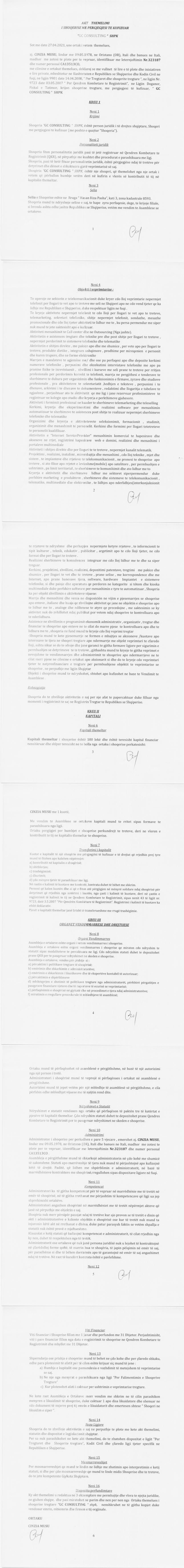 → Ekstrakt Historik i Regjistrit Tregtar, date 22.01.2022 → Statuti i shoqerise, date 27.04.2021 → Akt themelimi, date 27.04.2021 |