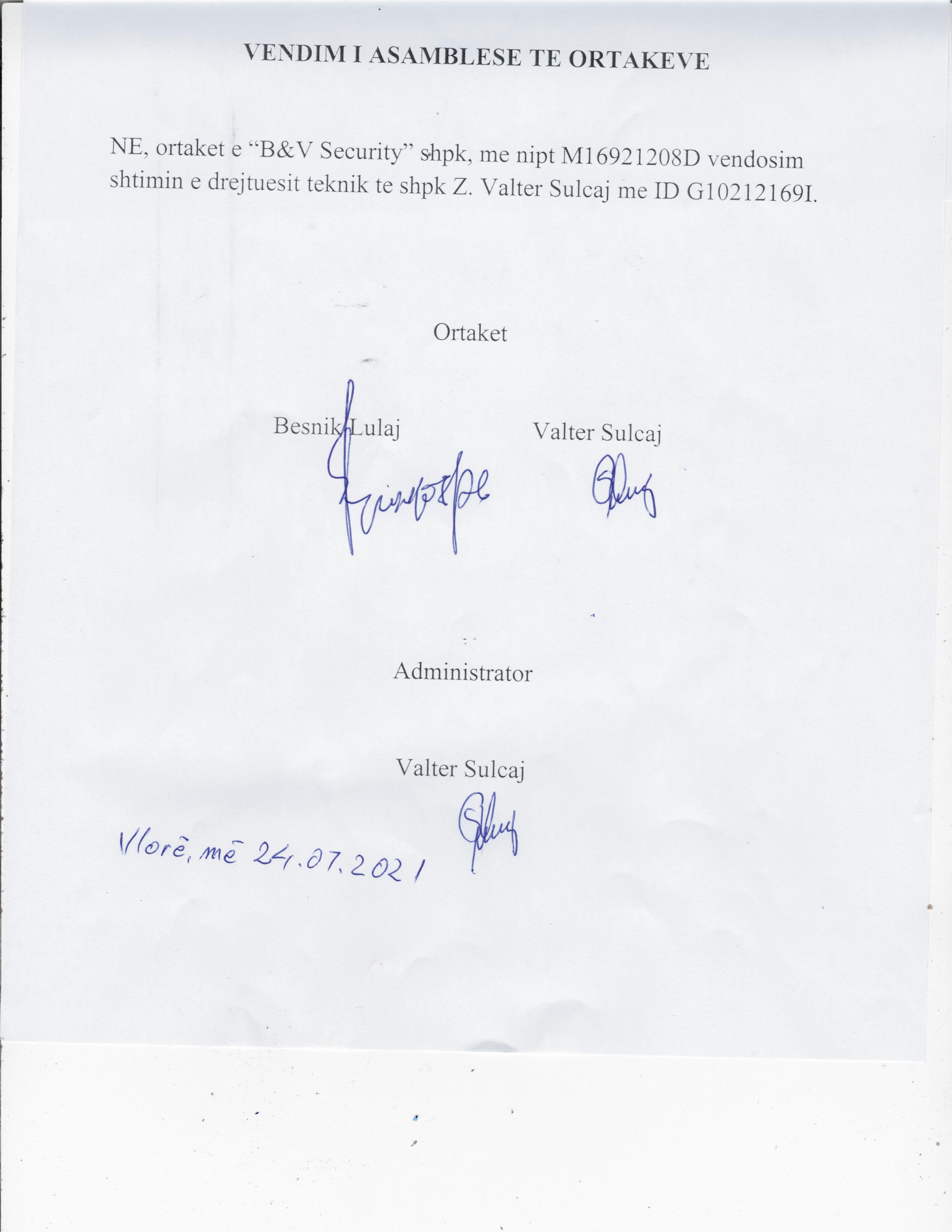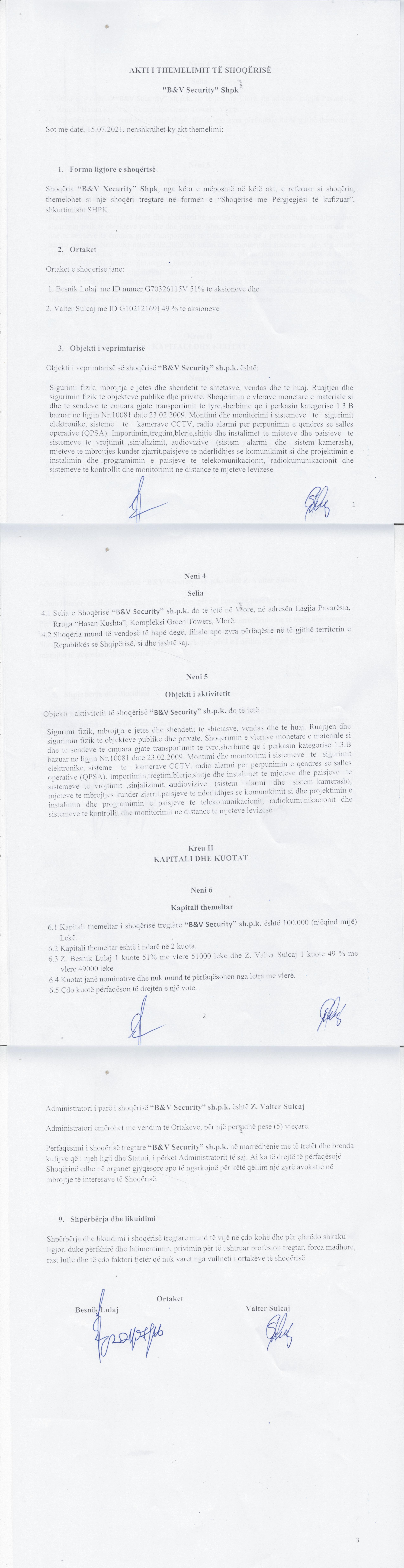 → Ekstrakt Historik i Regjistrit Tregtar, date 14.02.2022 → Statuti i shoqerise, date 15.07.2021 → Akt themelimi, date 15.07.2021 → Vendimi i asamblese date 24.07.2021 → Ekstrakti Historik i Regjistrit Tregtar date 06.09.2023 |