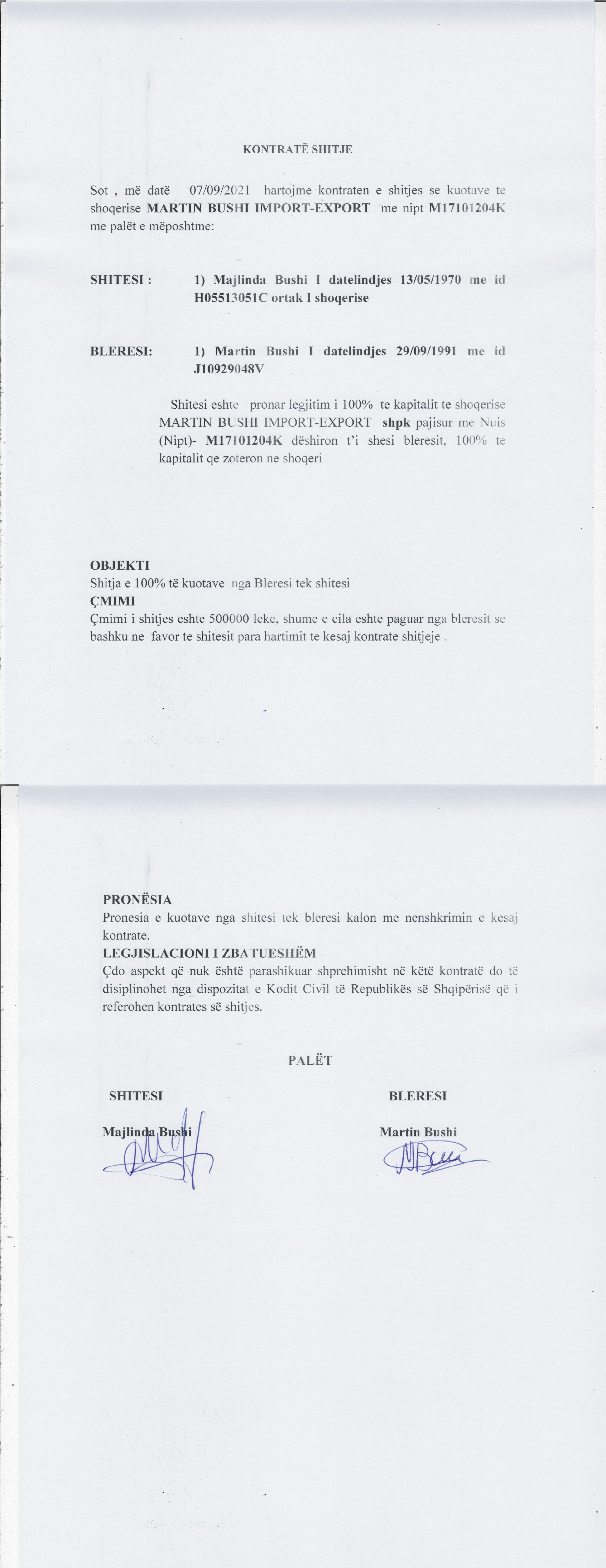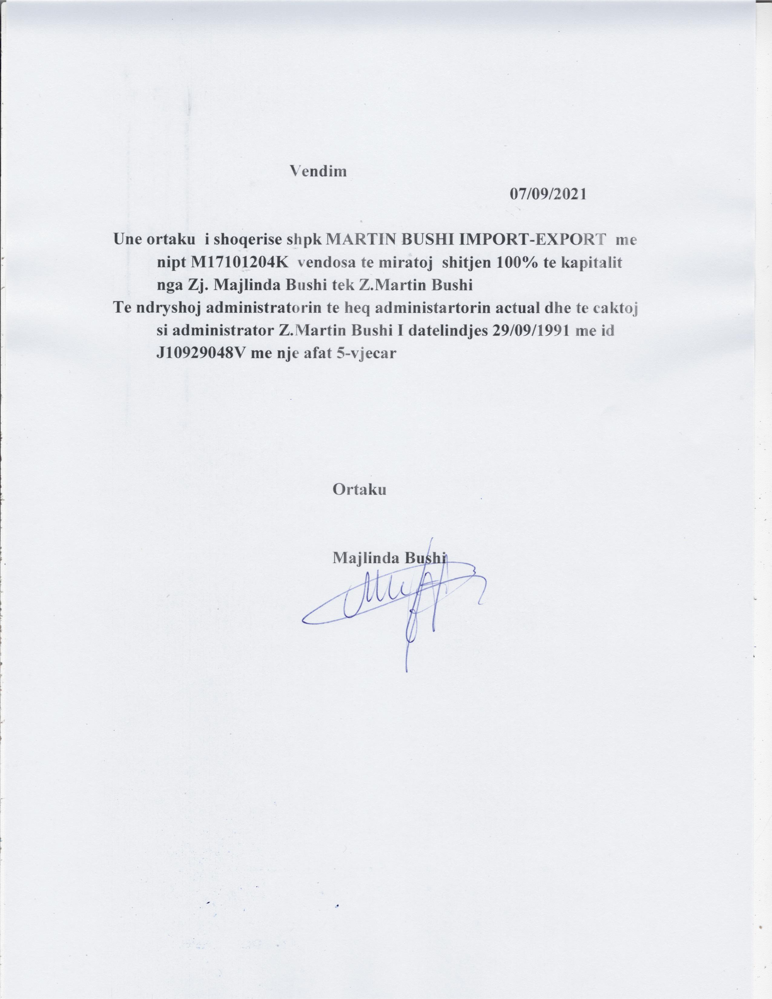 | Emërtime të tjera Tregtare: | MARTIN BUSHI IMPORT-EXPORT |