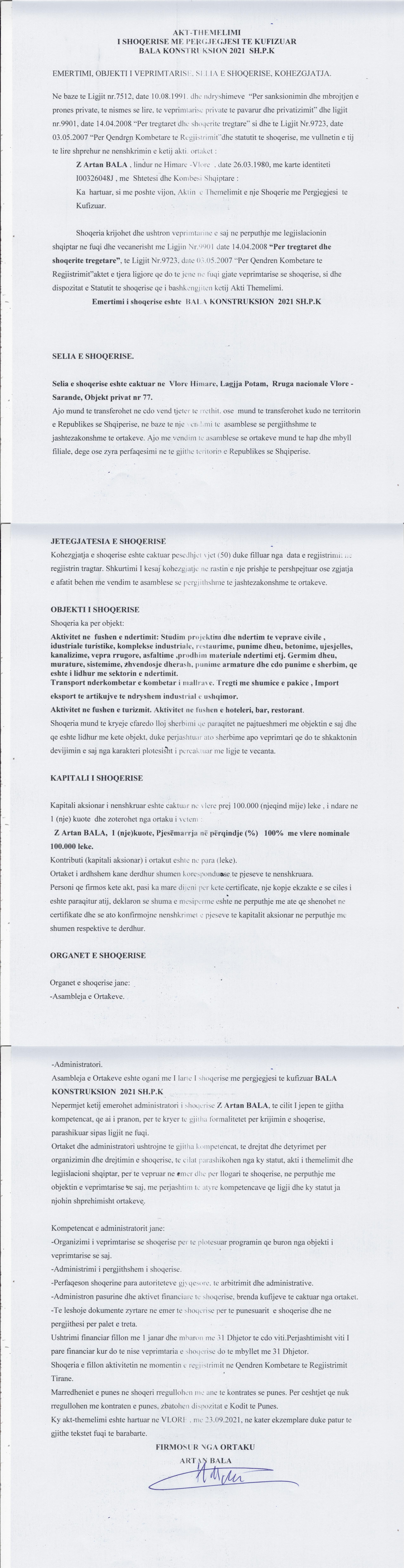 → Ekstrakti Historik i Regjistrit Tregtar date 01.03.2022 → Akt themelimi i Shoqerise |