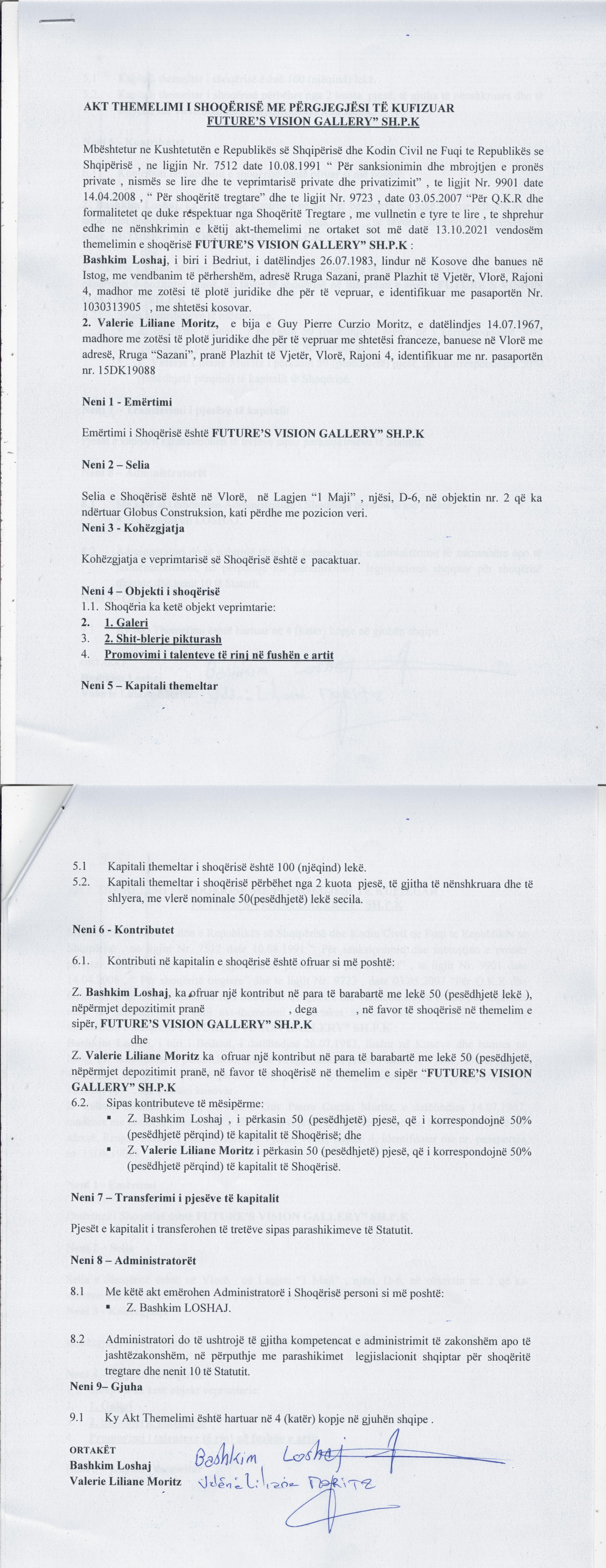 → Ekstrakti Historik i Regjistrit Tregtar date 04.03.2022 → Akt themelimi i Shoqerise |