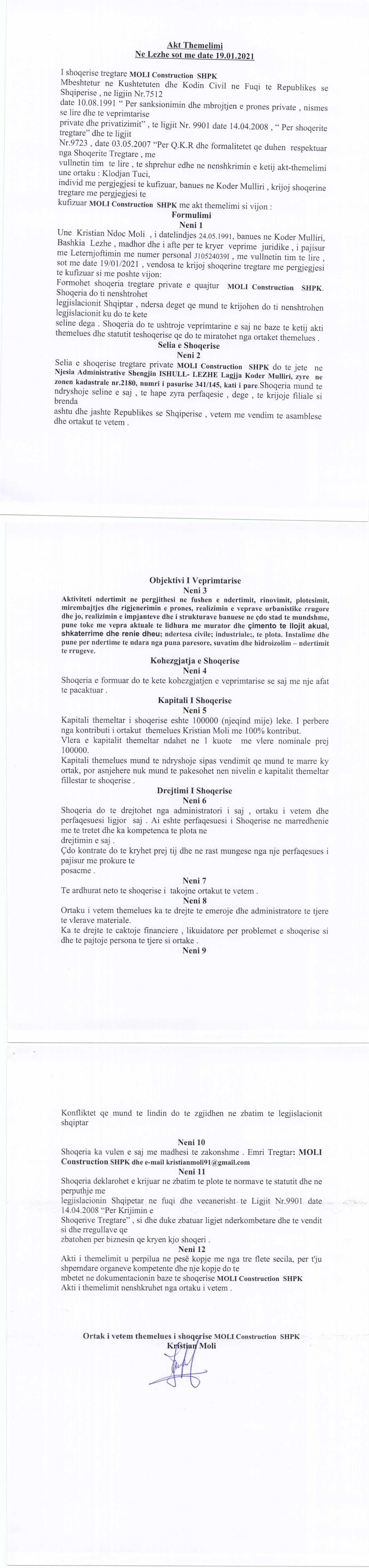 → Ekstrakt Historik i Regjistrit Tregtar, date 22.9.2021 → Akti i themelimit, date 19.01.2021 |