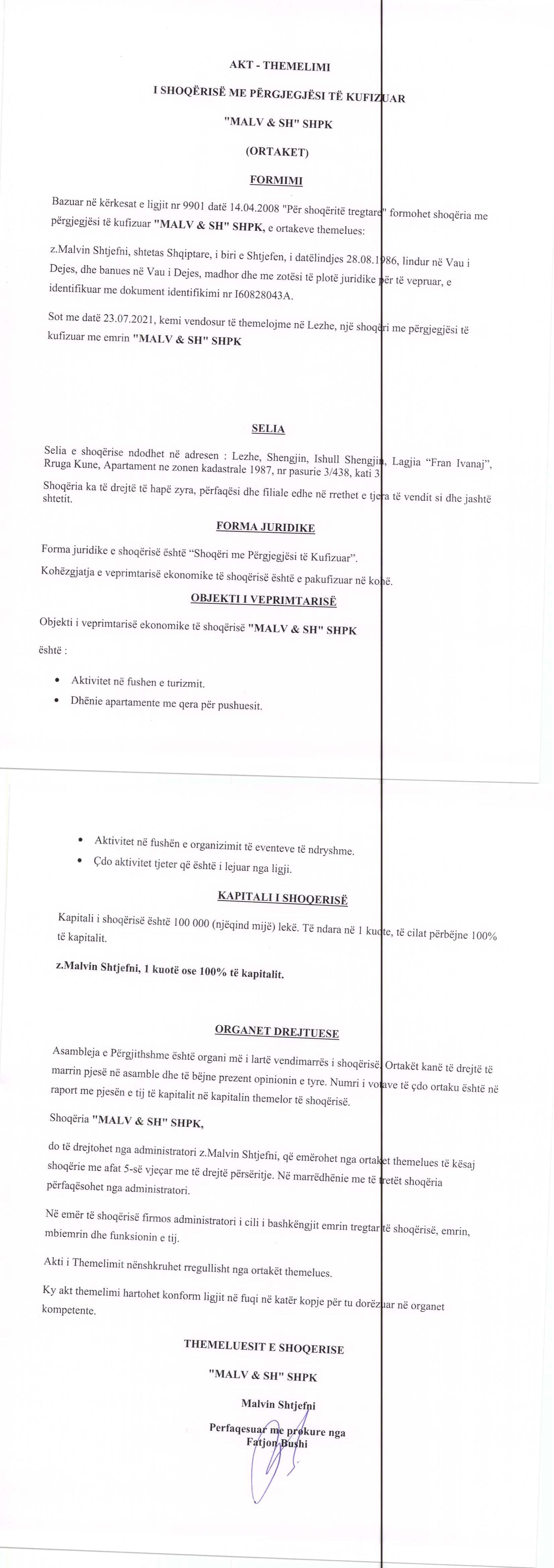 → Ekstrakt Historik i Regjistrit Tregtar, date 16.02.2022 → Akt themelimi, date 23.07.2021 → Statuti i shoqerise, date 23.07.2021 |
