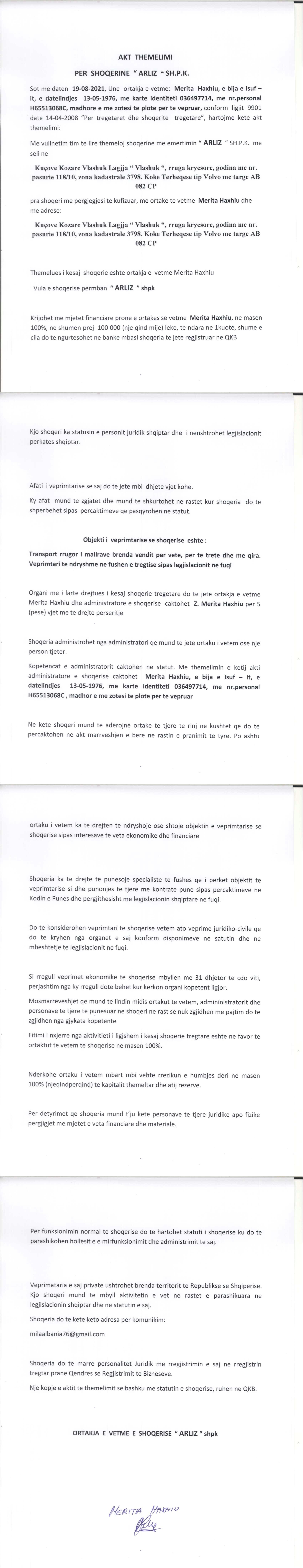 → Ekstrakti Historik i Regjistrit Tregtar date 18.02.2022 → Akt themelimi i Shoqerise |