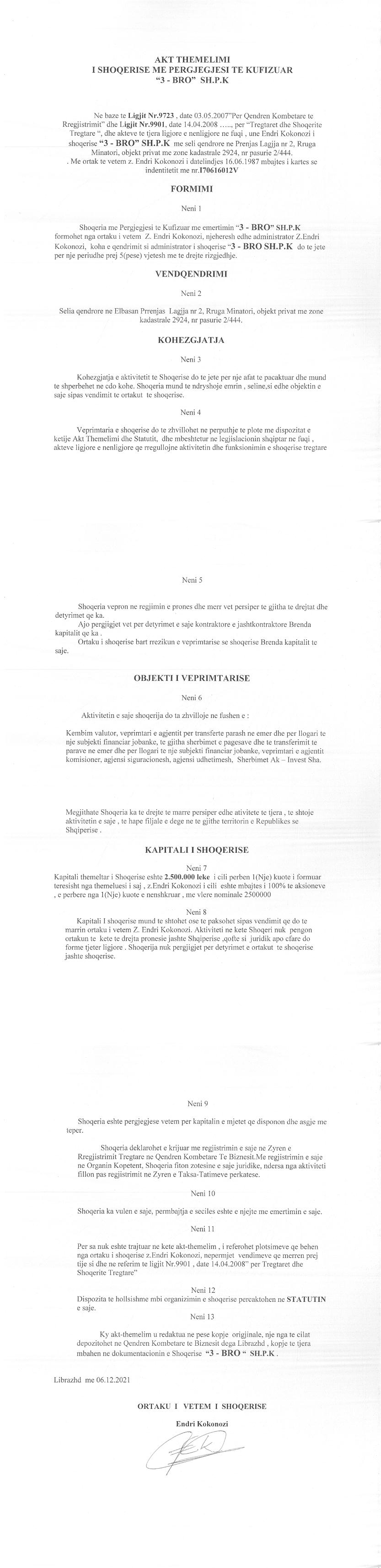 → Ekstrakti Historik i Regjistrit Tregtar date 17.03.2022 → Akt themelimi i Shoqerise |