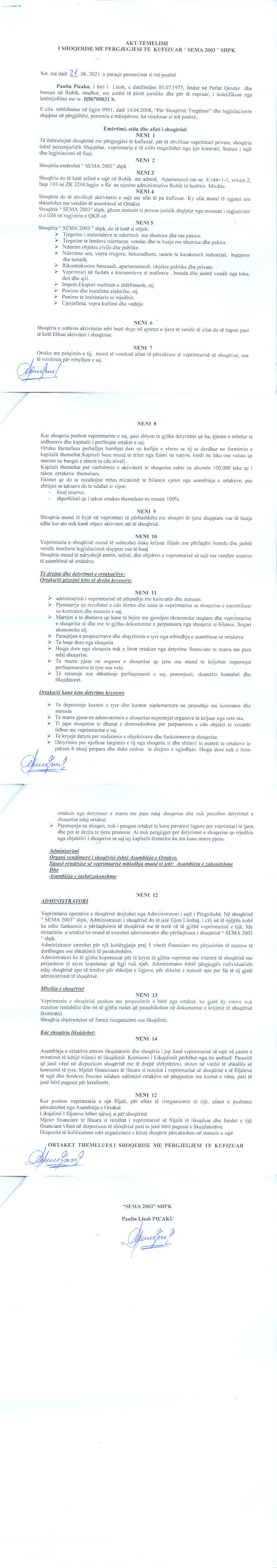 → Ekstrakt Historik i Regjistrit Tregtar, date 04.02.2022 → Akt themelimi, date 21.06.2021 → Statuti i shoqerise, date 21.06.2021 |