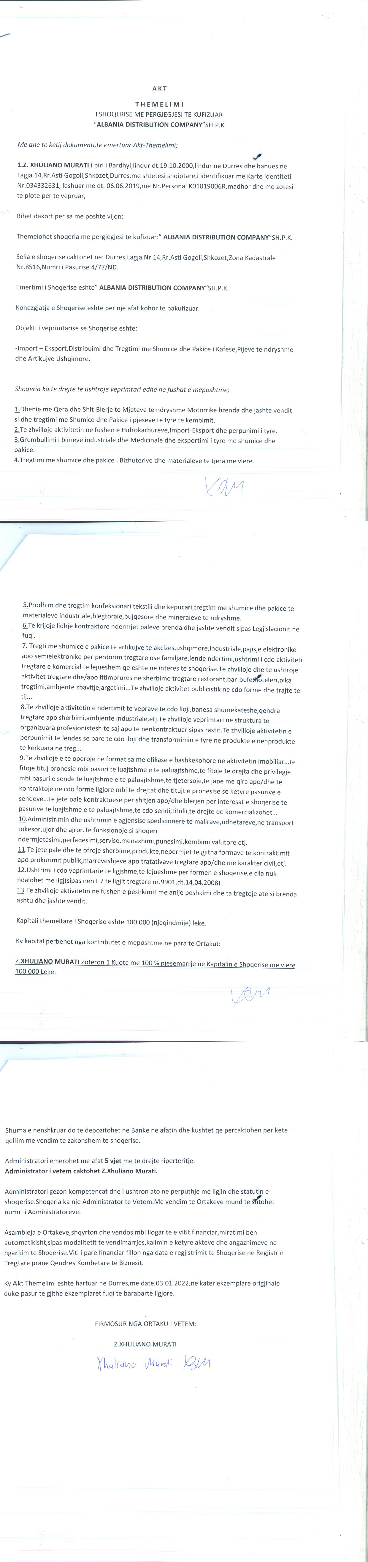 ALBANIA DISTRIBUTION COMPANY
