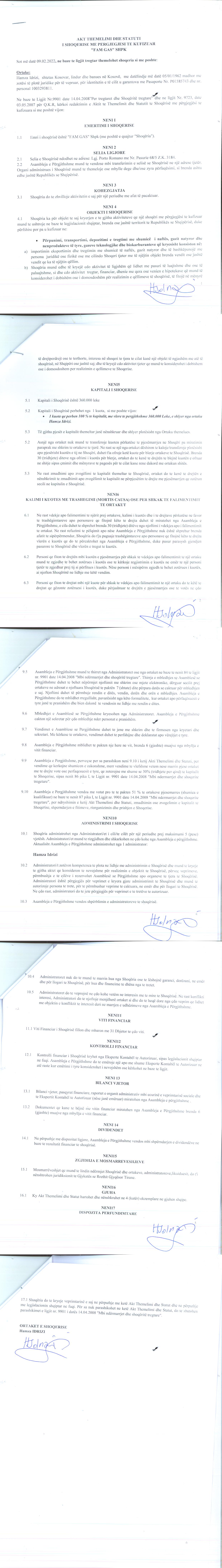 → Ekstrakti Historik i Regjistrit Tregtar date 14.02.2022 → Akt themelimi dhe Statuti i Shoqerise |