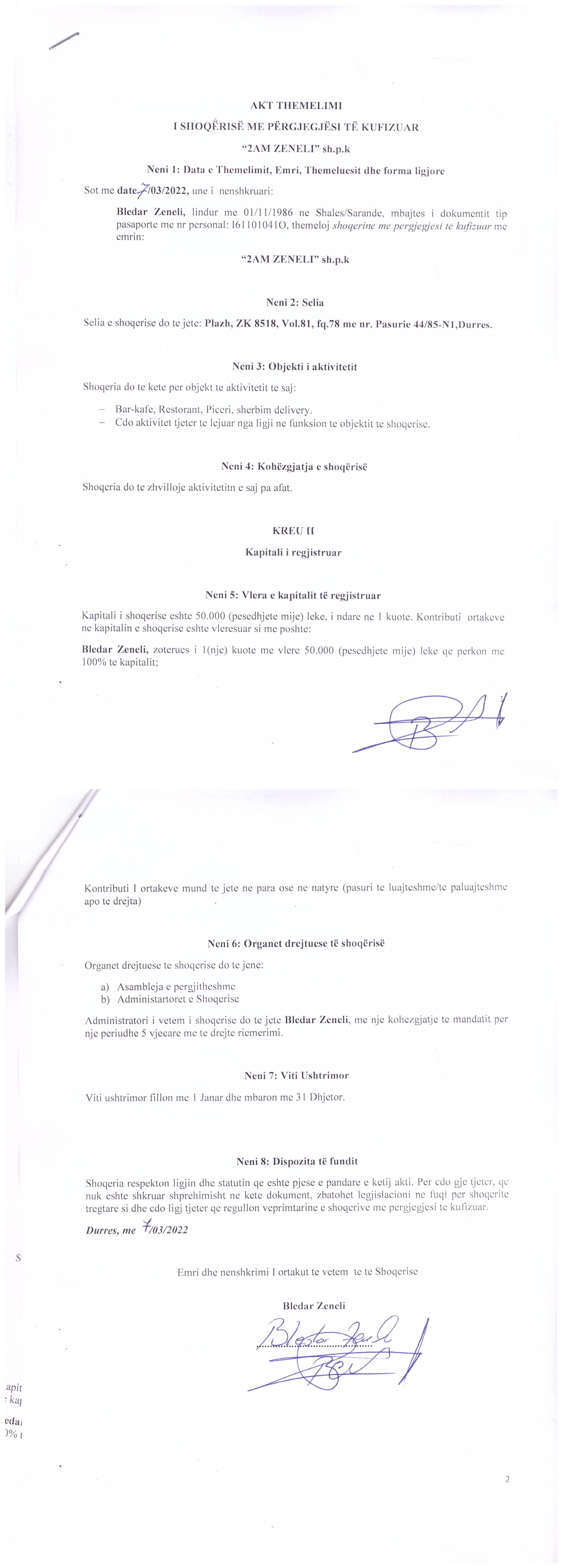 | Emërtime të tjera Tregtare: | 2AM ZENELI |